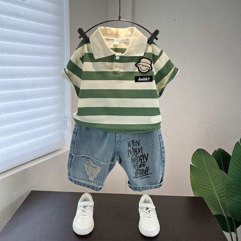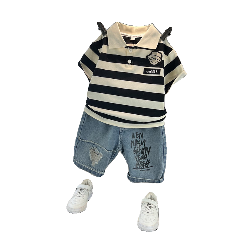 男童夏季套装2026新款儿童短袖polo衫时髦薄款宝宝夏装两件套衣服