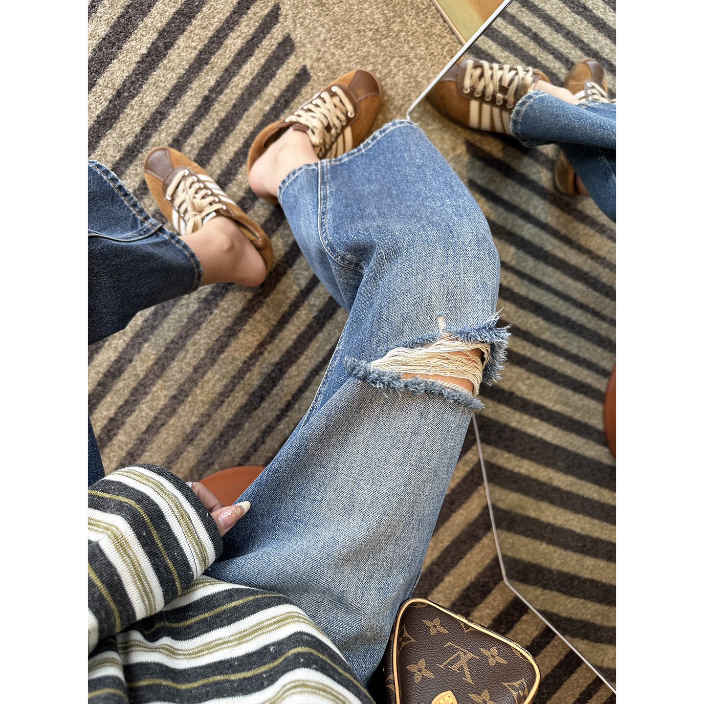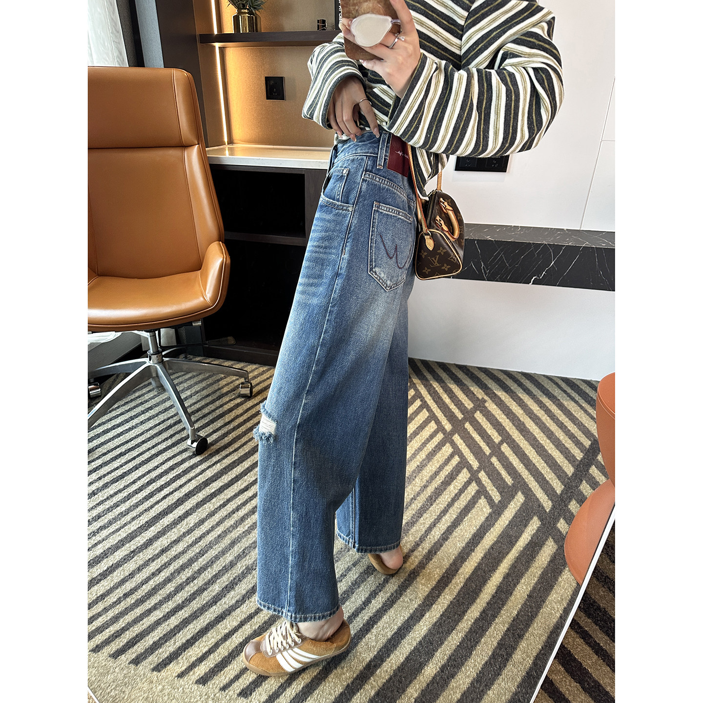 直腿法宝!破洞设计九分直筒牛仔裤女2026新款复古百搭小个子裤子