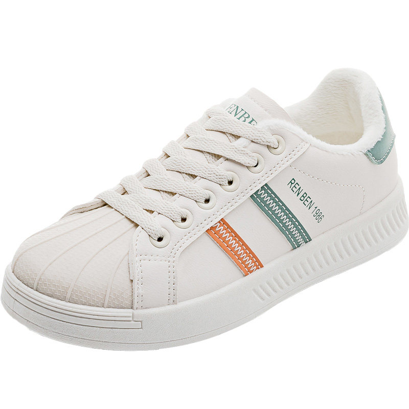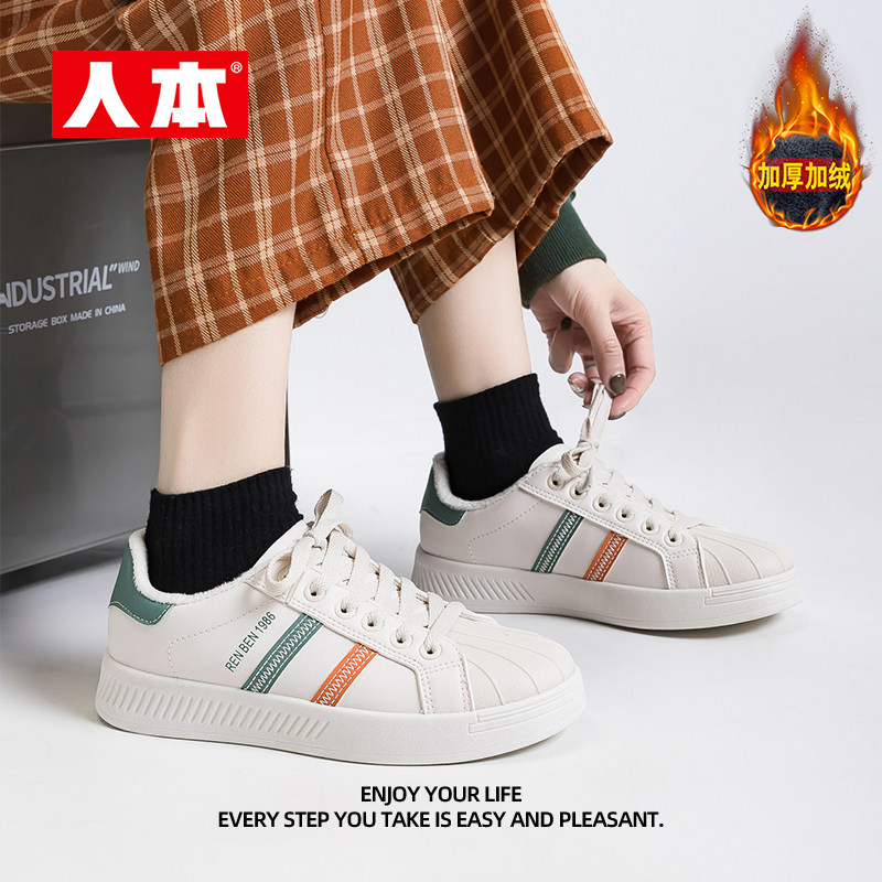 人本板鞋女款2026新款春秋季小白鞋贝壳头女鞋厚底增高时尚二棉鞋