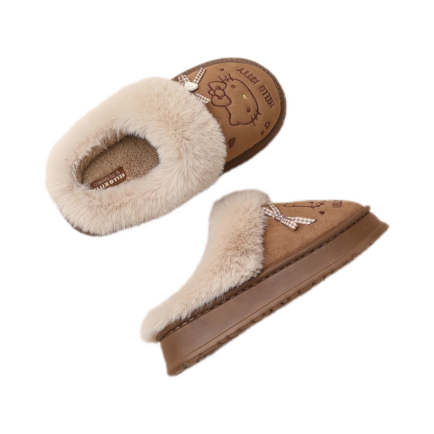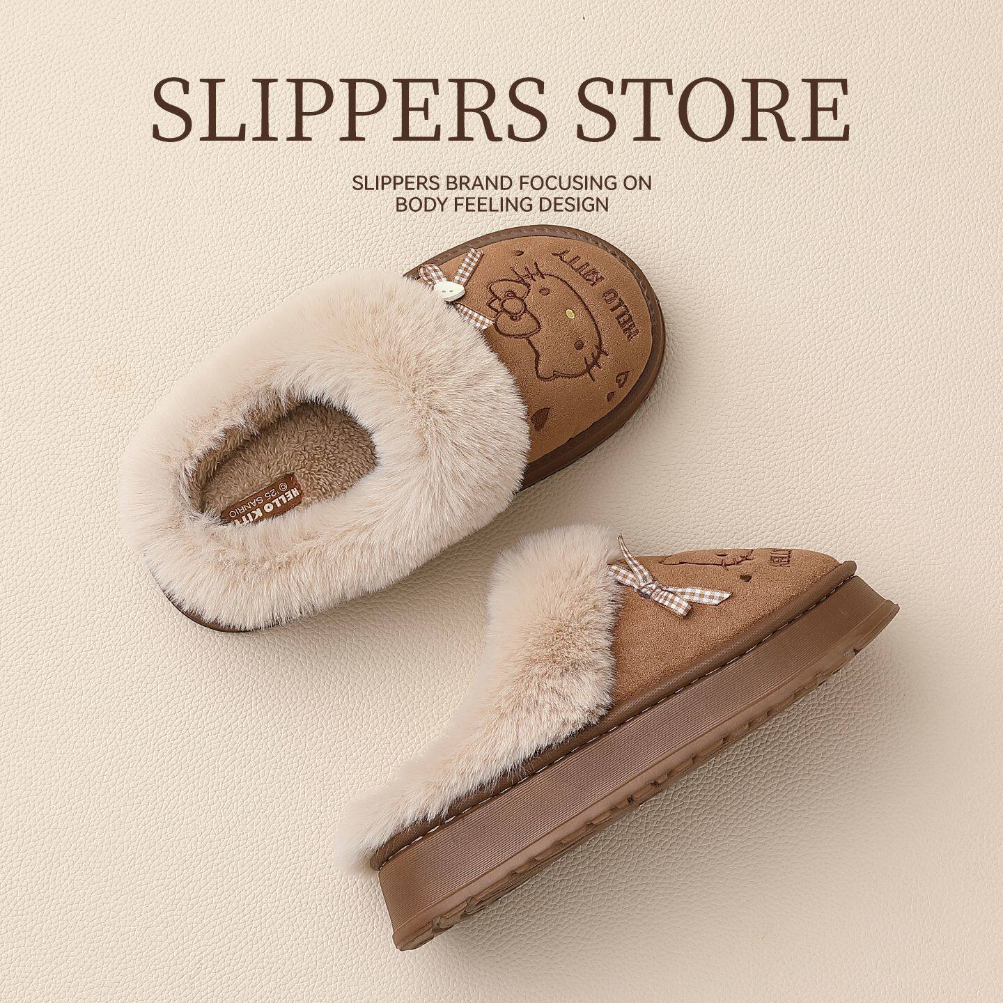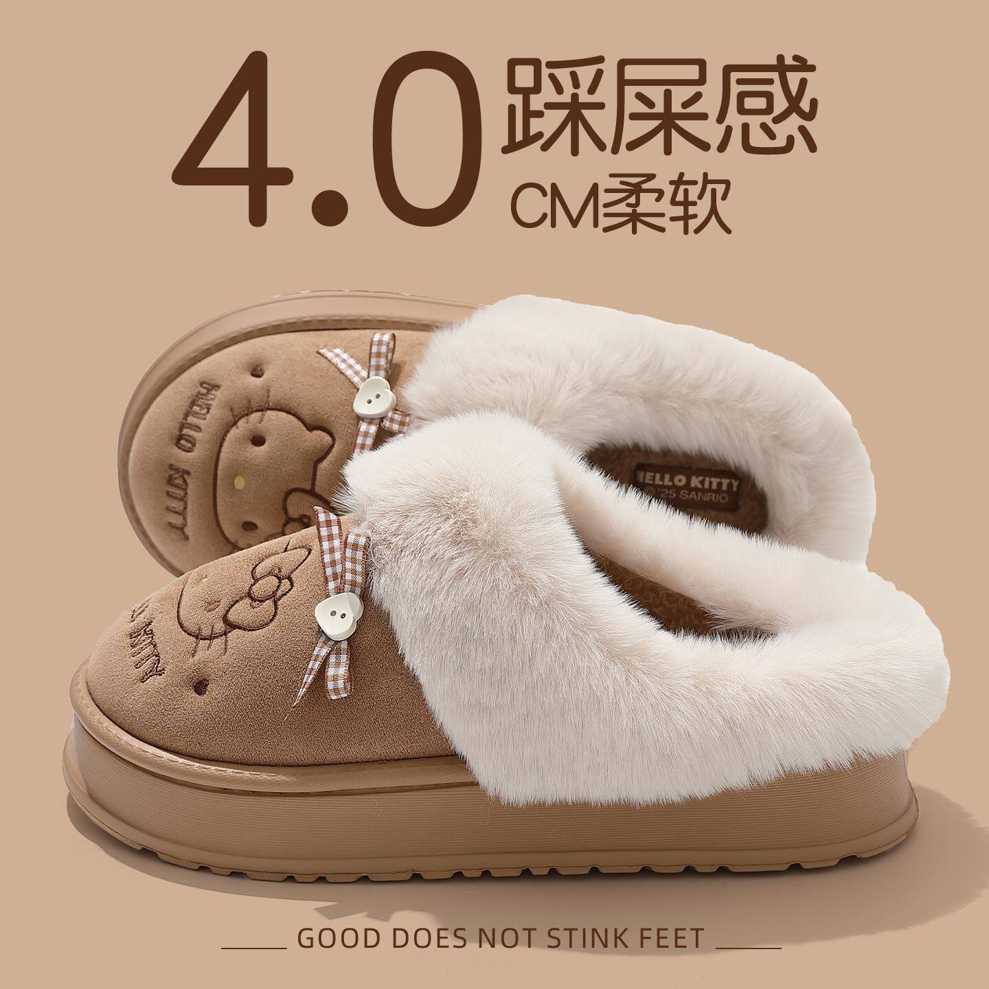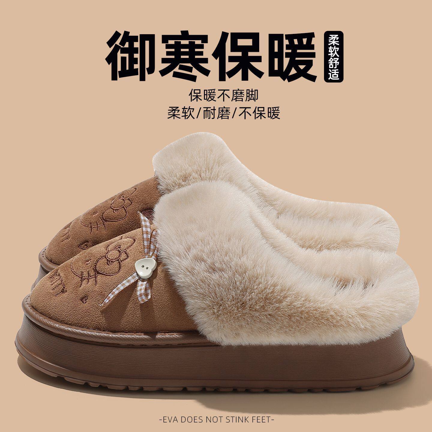 KT猫棉拖鞋女款冬季外穿包跟保暖25新款室内厚底毛绒亲子儿童棉鞋