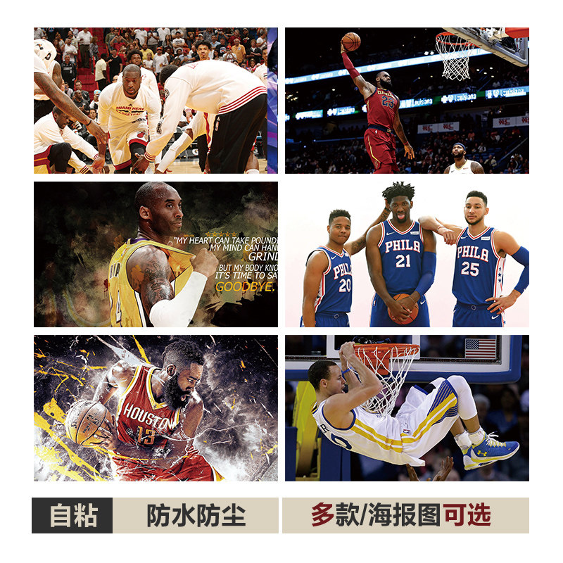 篮球海报墙贴明星詹姆斯哈登科比库里字母哥杜兰特乔丹塔图姆壁纸