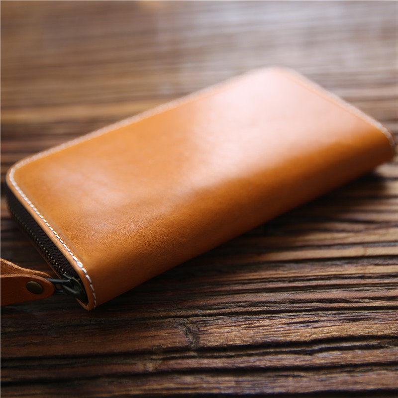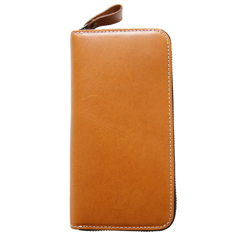 手工意大利植鞣男士长款钱包真皮拉链皮夹头层牛皮钱夹休闲手包
