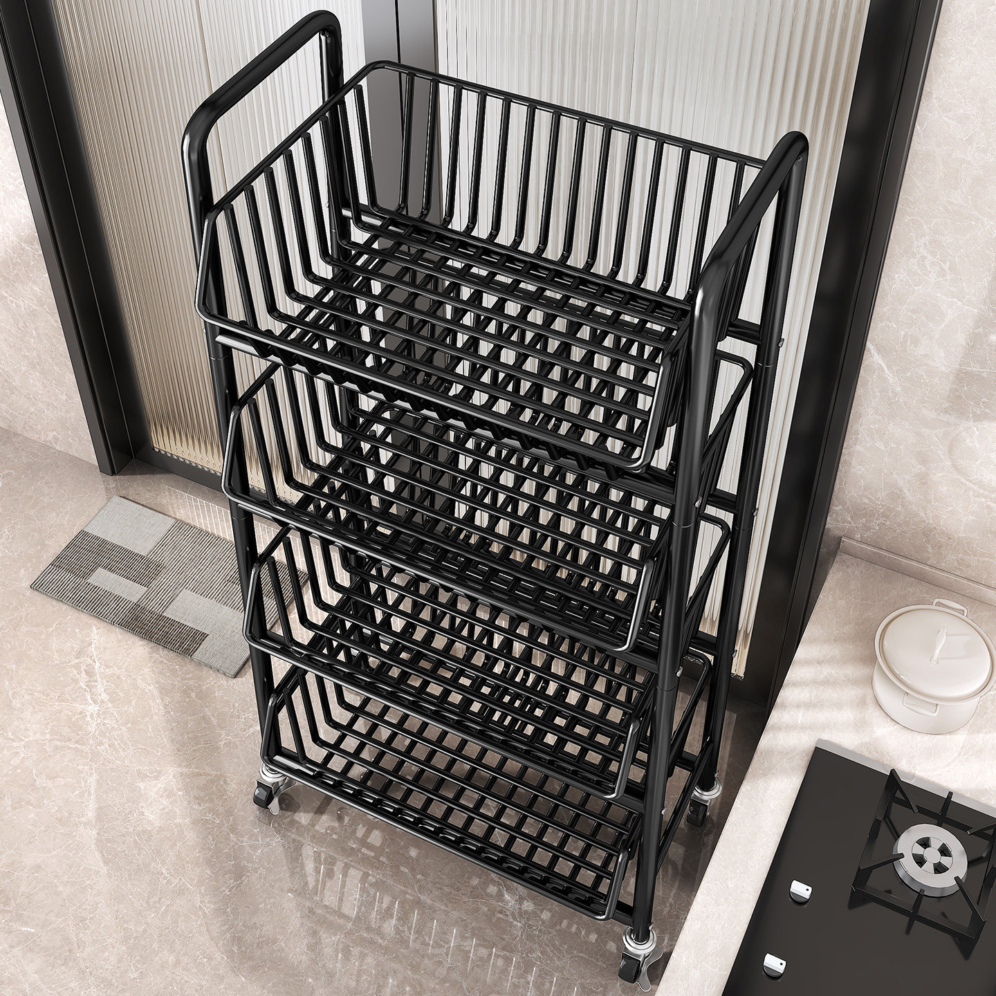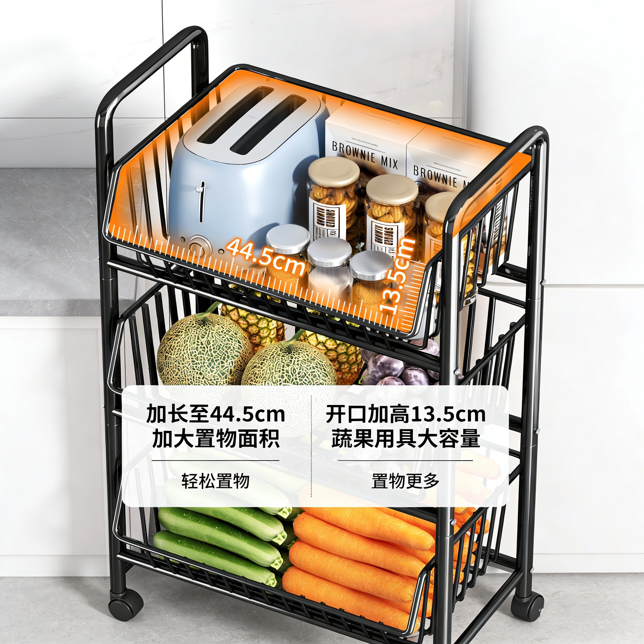 厨房蔬菜置物架落地多层菜篮收纳架新款多功能省空间可移动小推车