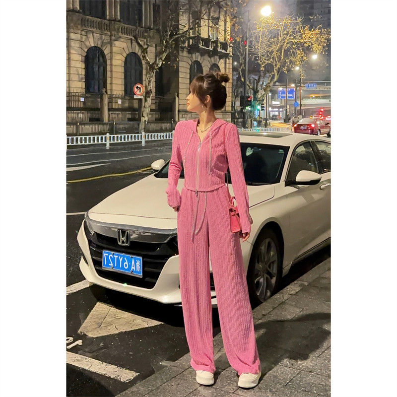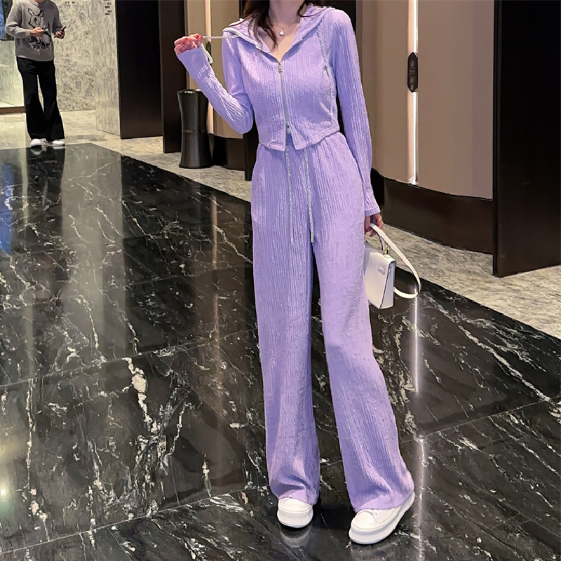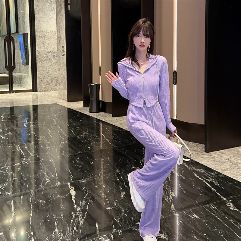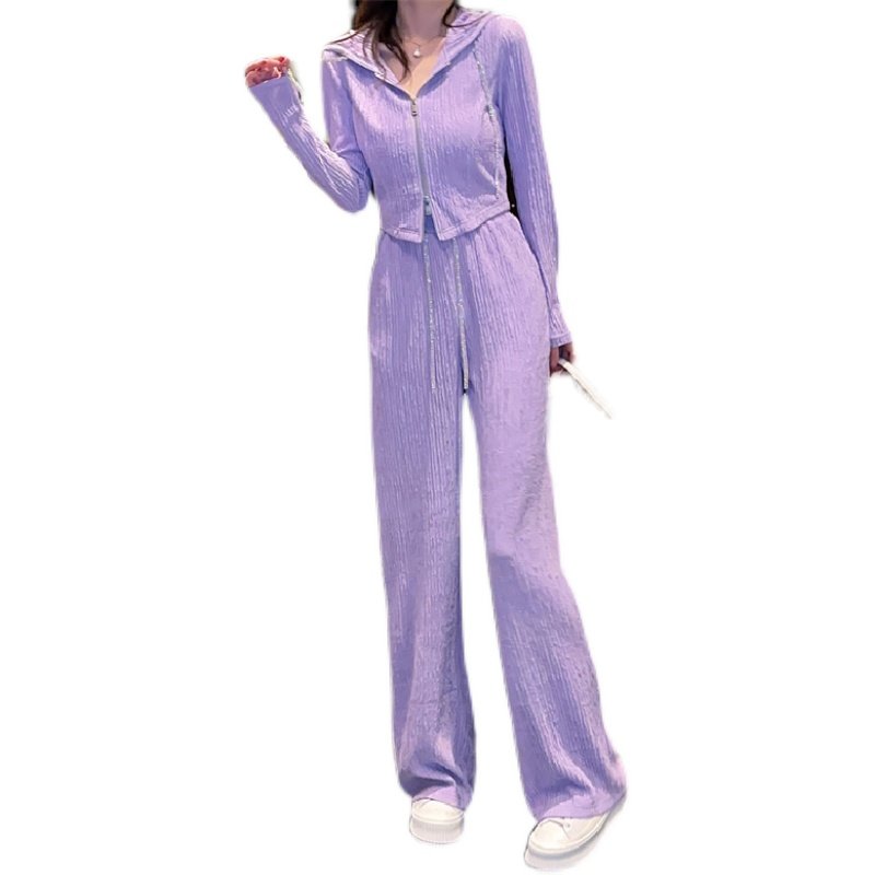 早春季装时尚休闲运动服女秋紫色卫衣套装2026年新款小个子两件套
