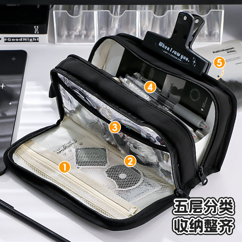 日式大容量笔袋2025超火新款文具盒男生男孩款小学生铅笔盒初中生女生女孩高颜值ins风韩系透明隐藏痛层文具