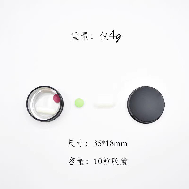 随身药盒黑色避光小号迷你便携式铝合金食品级包装密封小盒不生锈