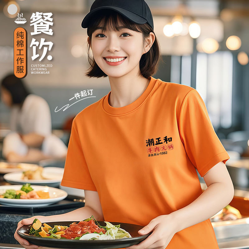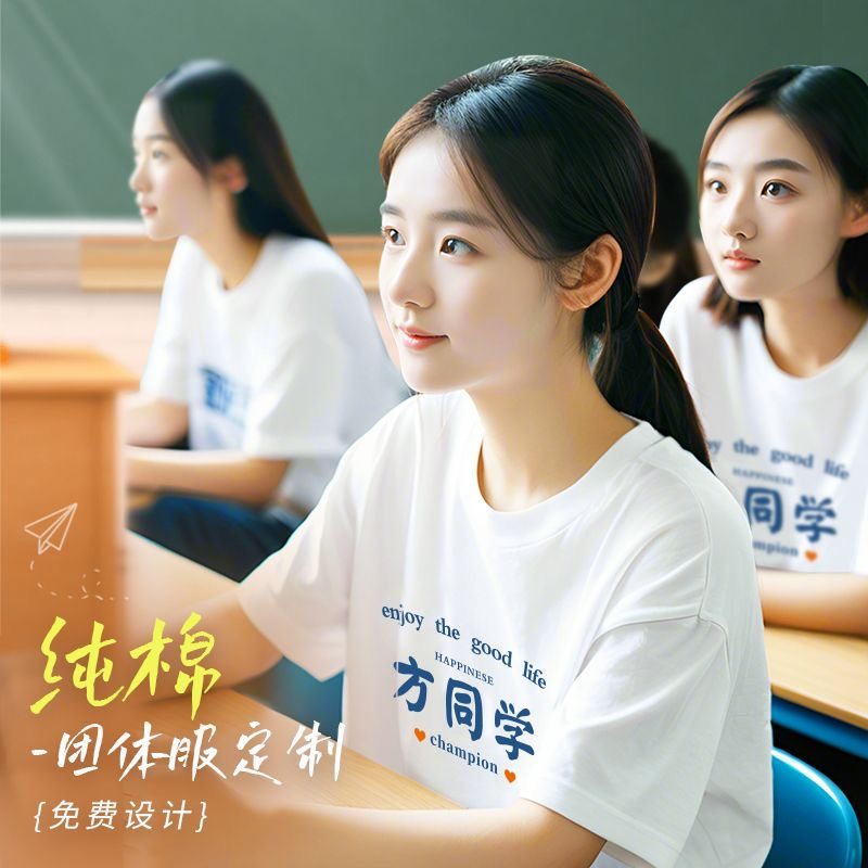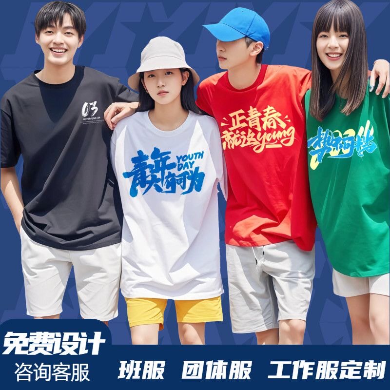 班服定制纯棉圆领短袖T恤团体工作服广告文化衫免费刺绣印字logo