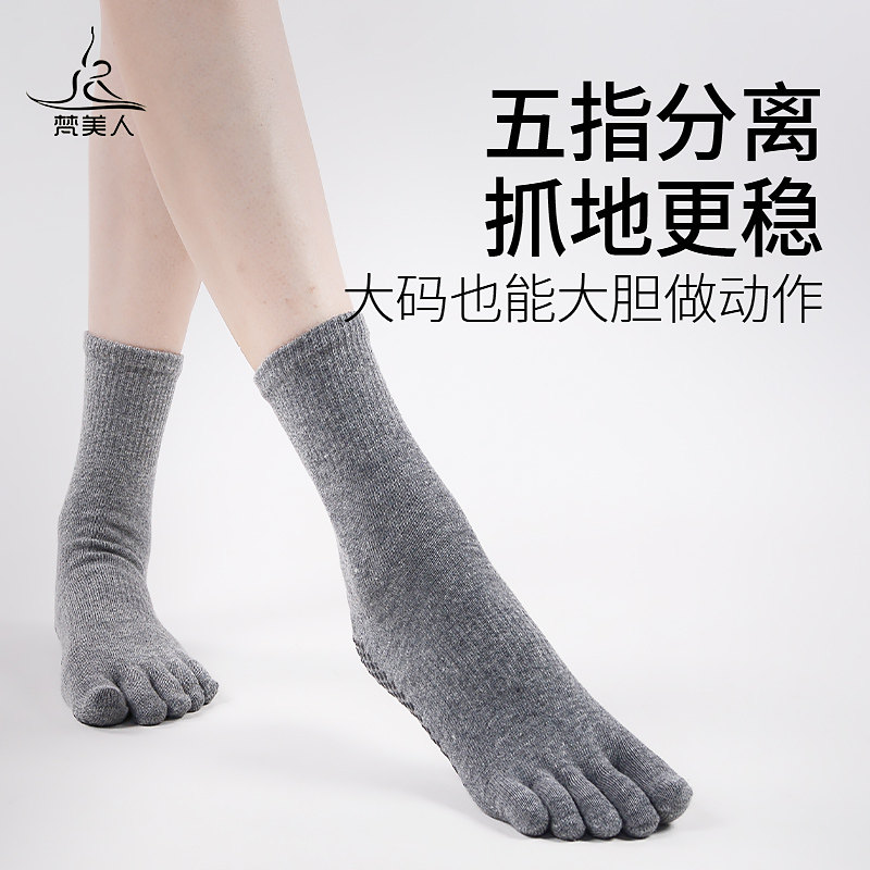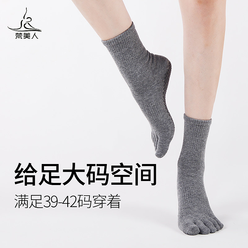 梵美人专业瑜伽袜子大码防滑中长筒五指袜女士普拉提舞蹈分趾袜