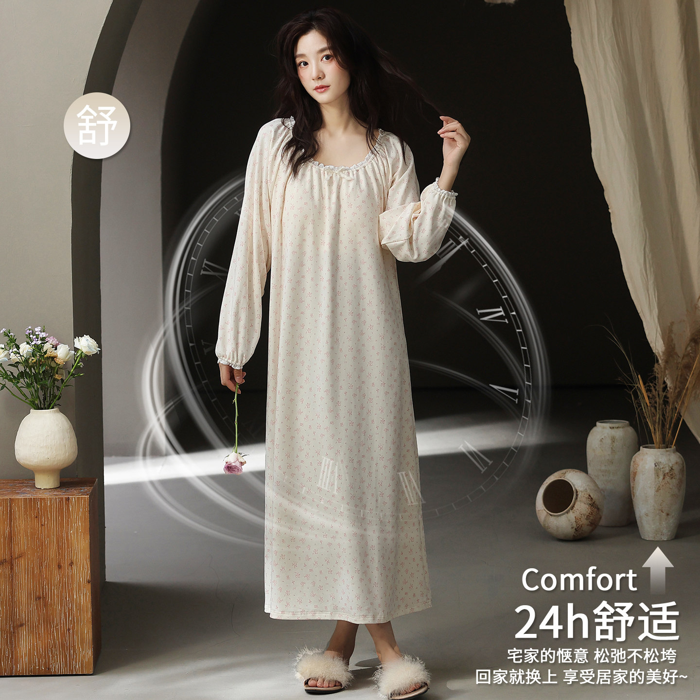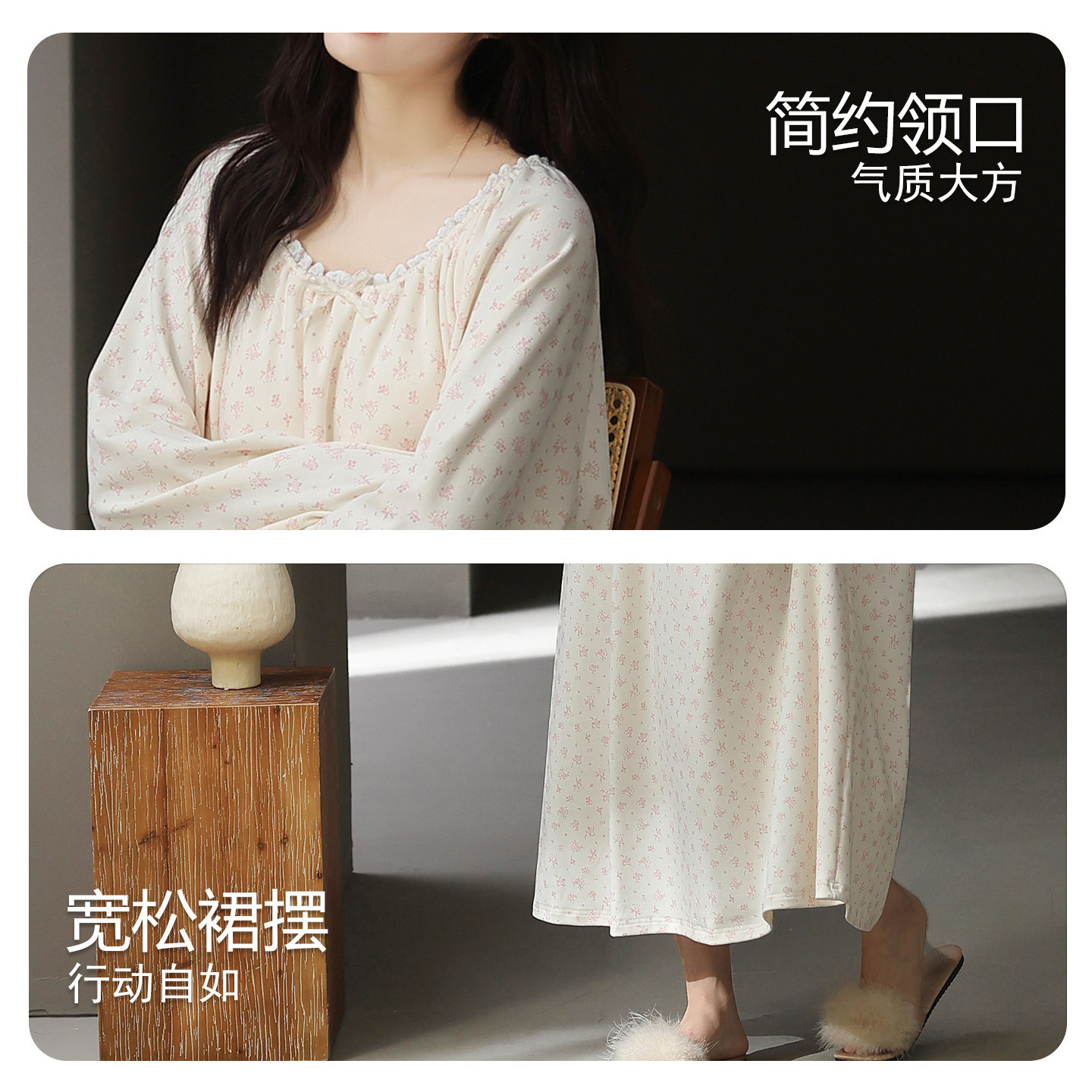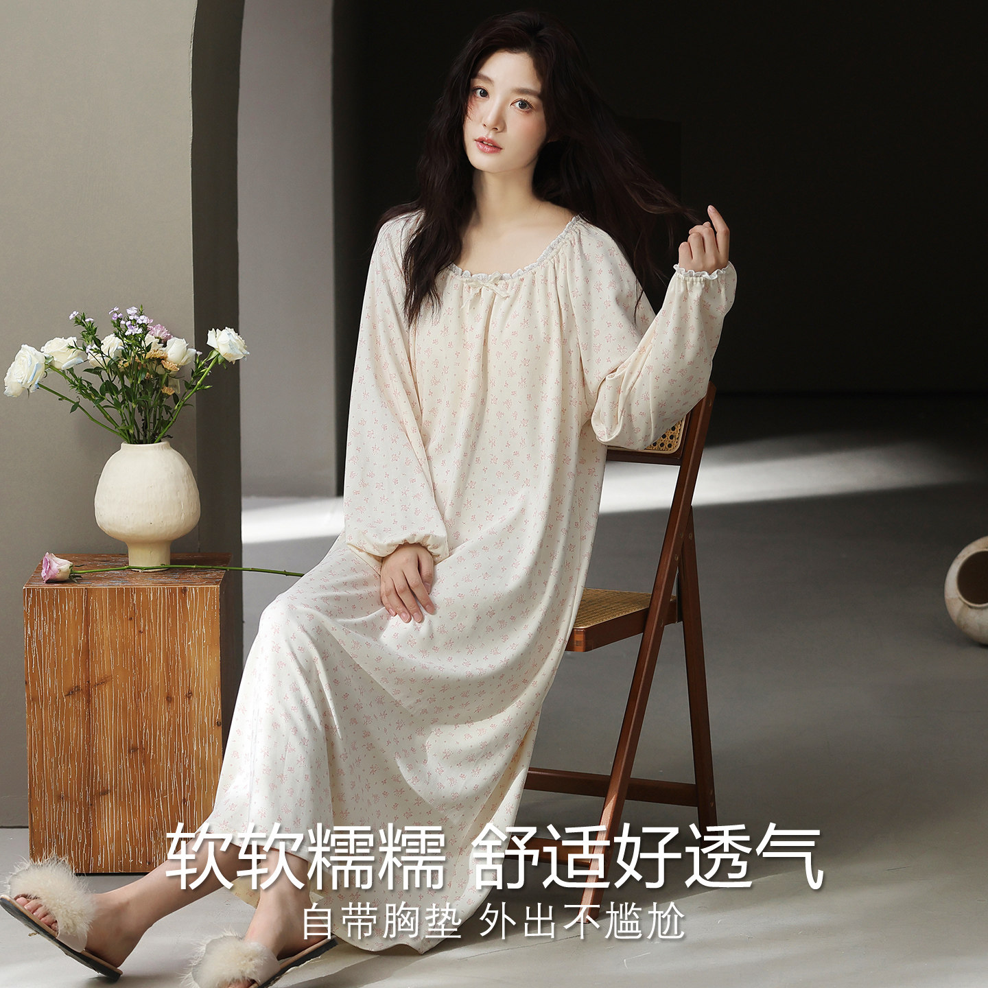 芬腾可安睡裙女款2026新款冬高级感秋季纯棉带胸垫姗睡衣女款冬天
