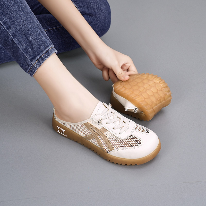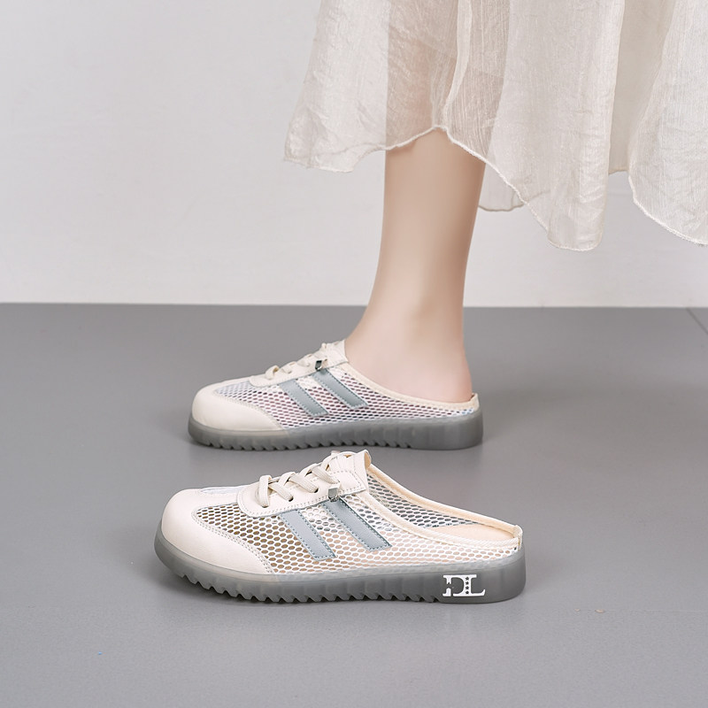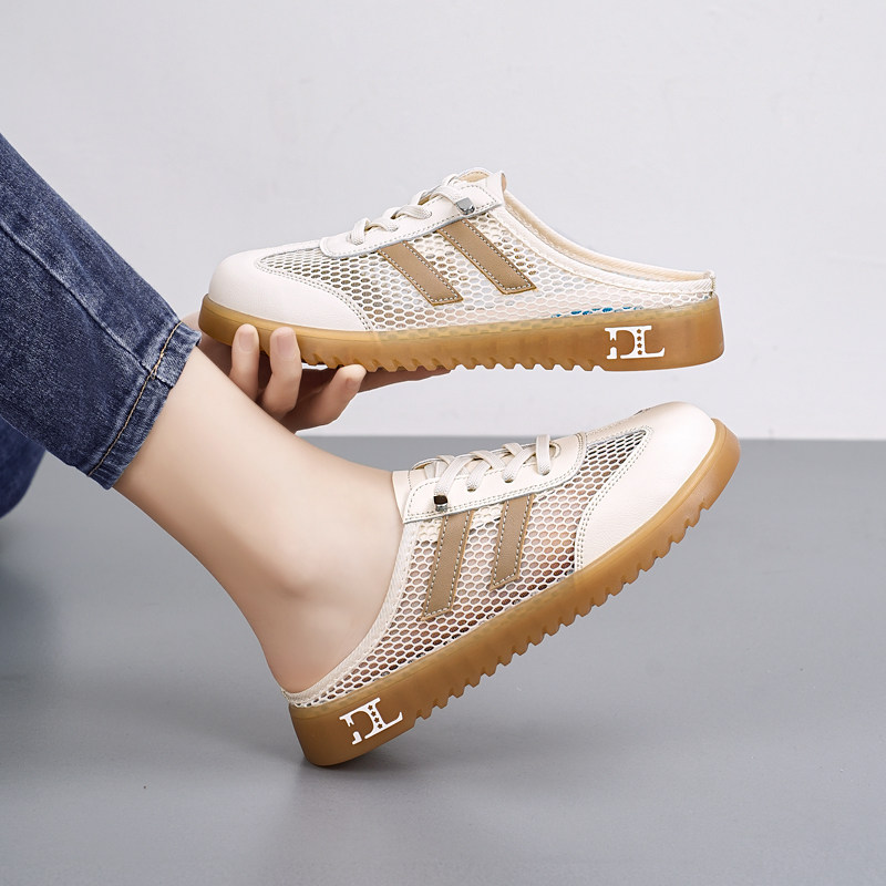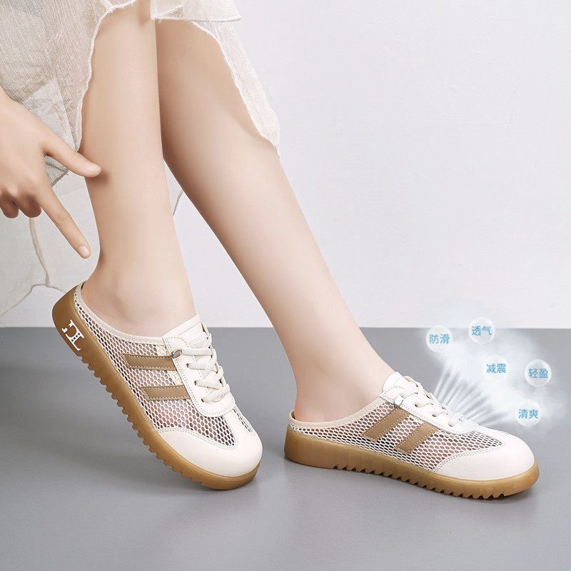 真皮半拖鞋夏季2026新款网鞋女透气网面一脚蹬舒适软底不累脚女鞋