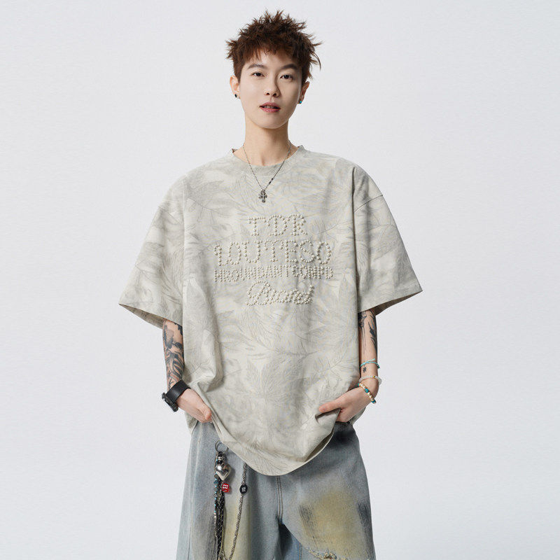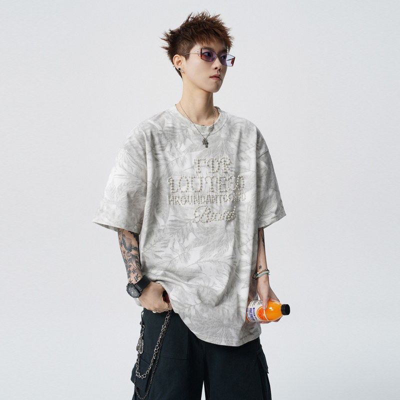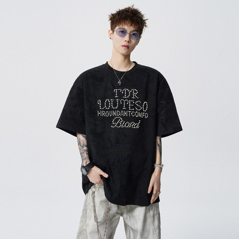 爆款!2026夏季新款男士珍珠烫钻男士短袖T恤情侣半袖T2625特P35