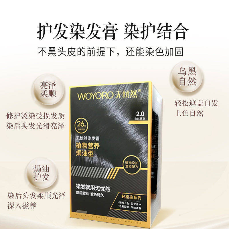 无忧然植物染发膏正品无忧然染发霜护发焗油泡泡染发剂袋白发黑色