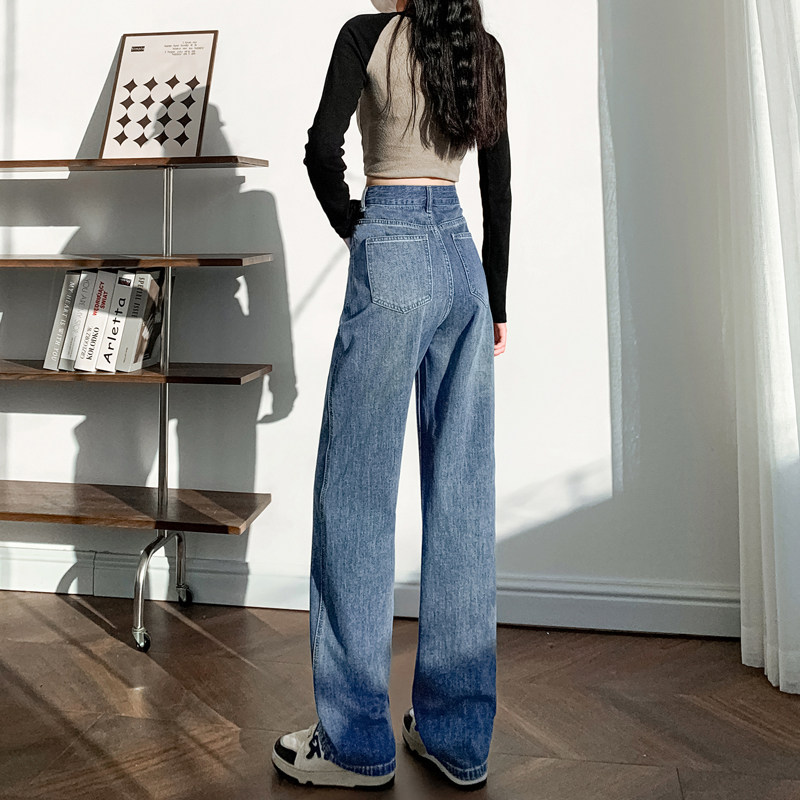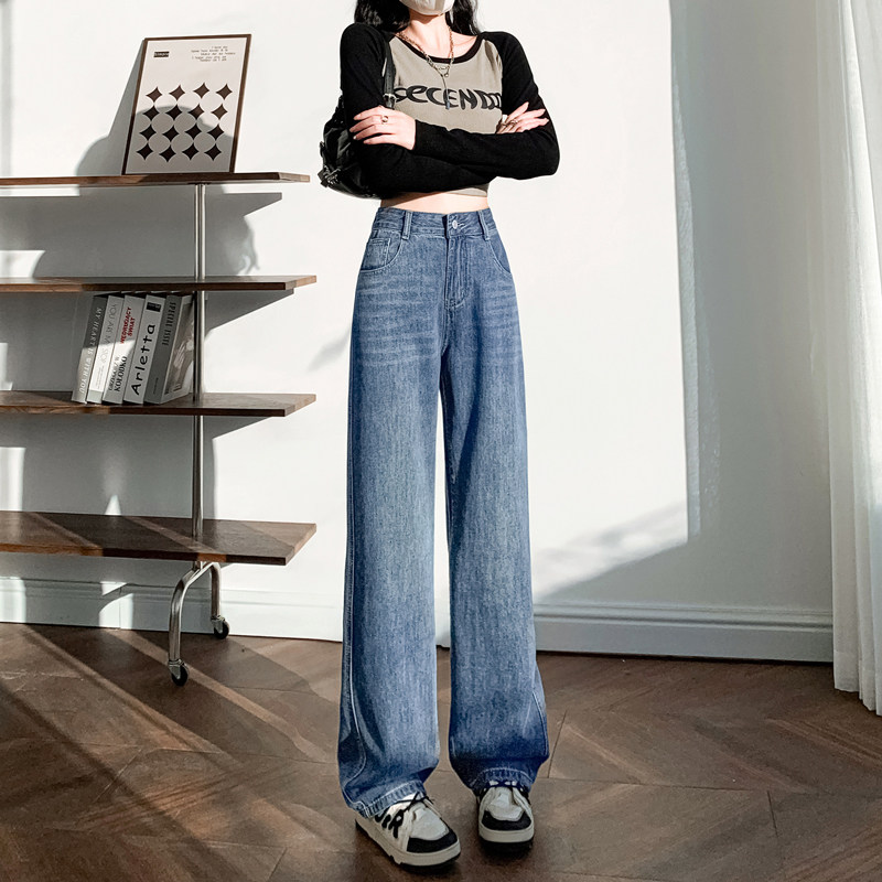 高腰阔腿牛仔裤女款夏薄款2026新款高腰显瘦垂感宽松直筒拖地裤子