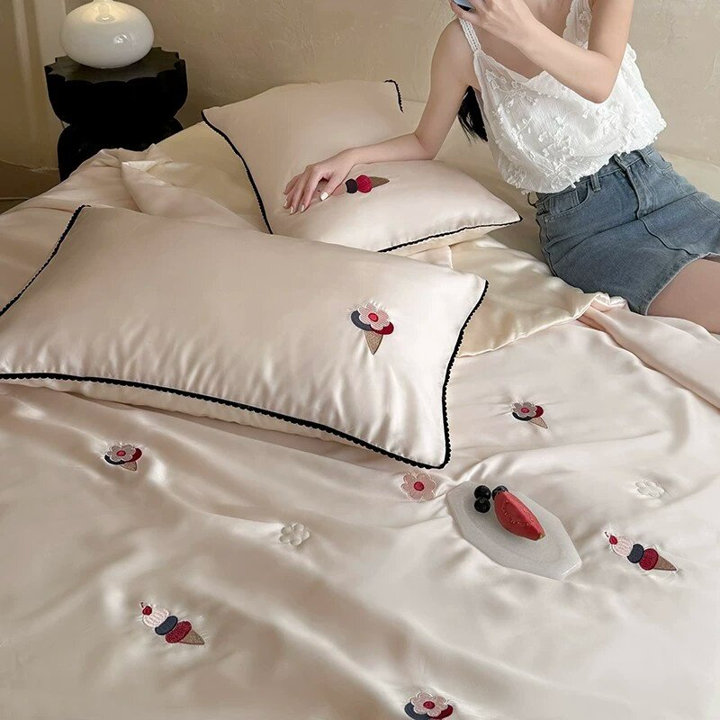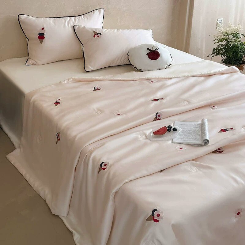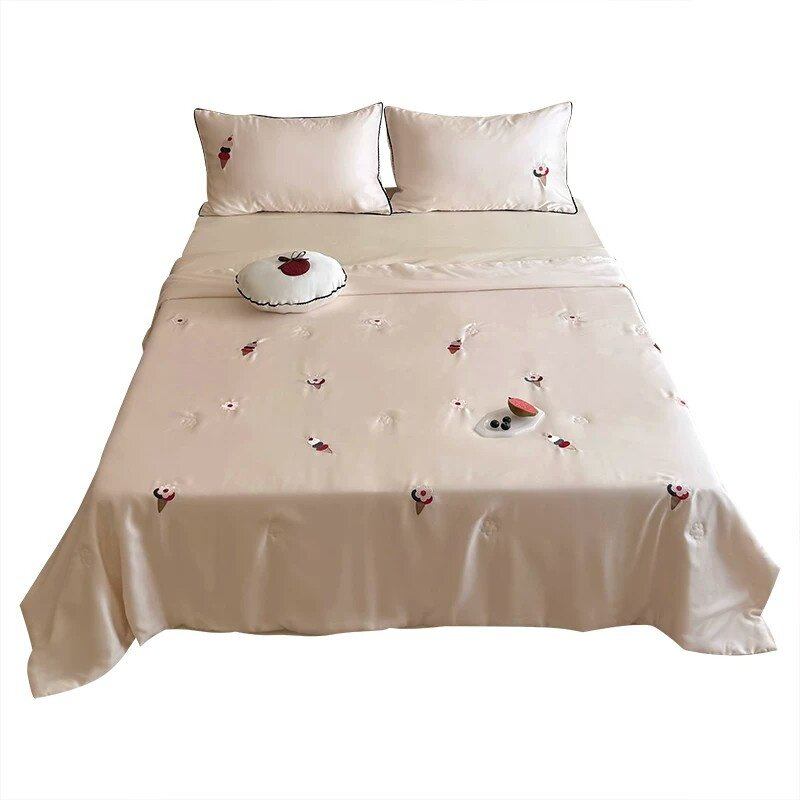 60S天丝夏凉被冰丝夏季粉色薄款空调被四件套可水洗凉感轻薄被子