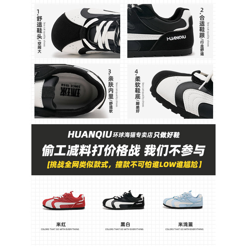 环球平底德训鞋女款2025新款爆款夏季透气百搭黑色鞋子女休闲女鞋