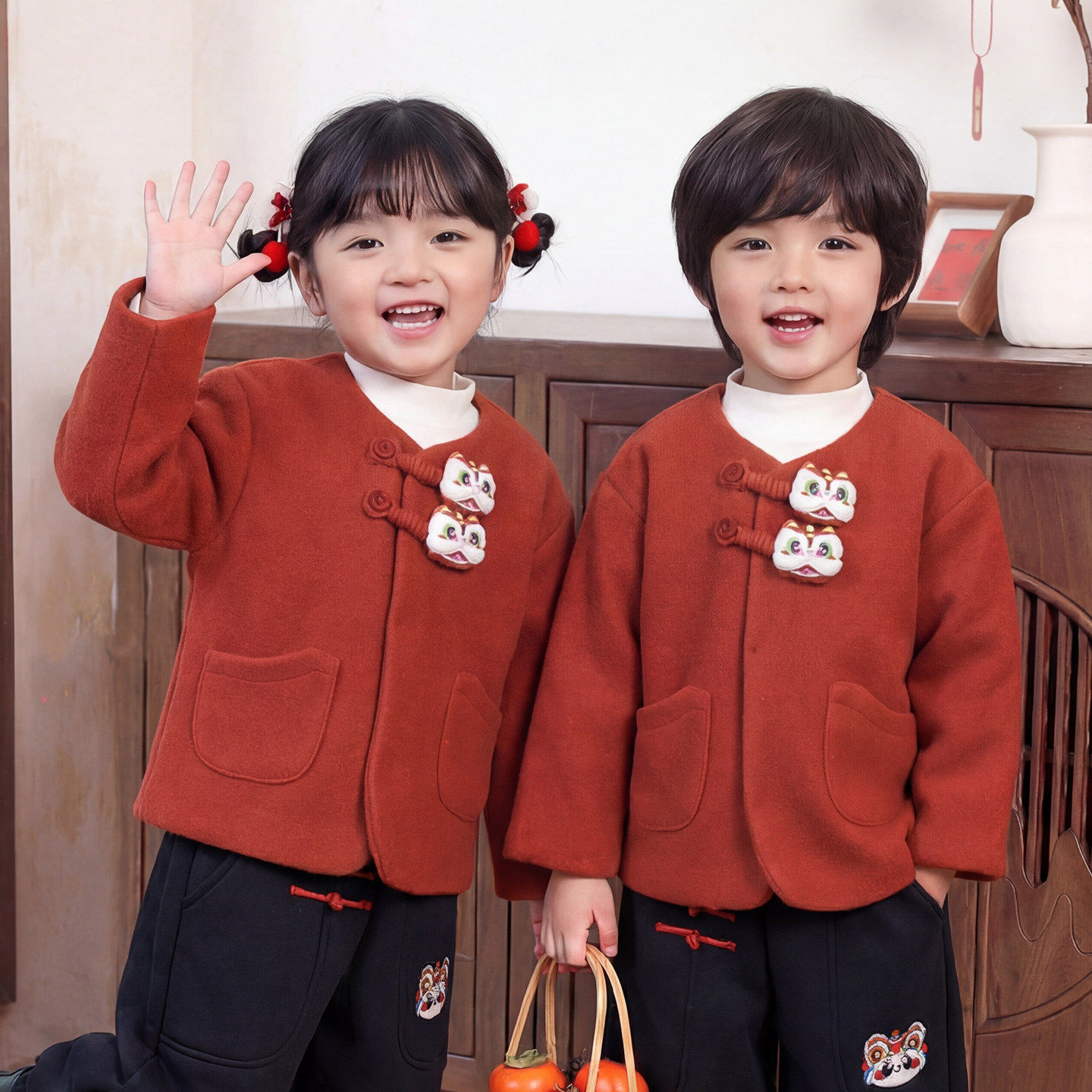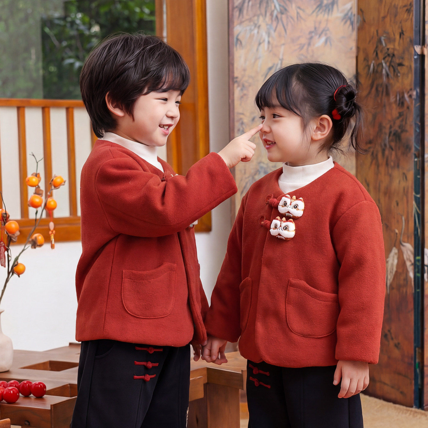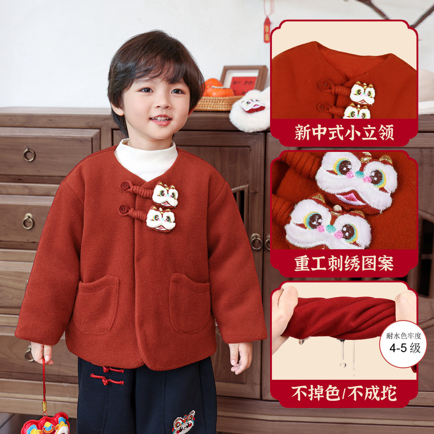 儿童拜冬年服新中式国风冬装唐装男女童过年衣服红色喜庆夹棉外套