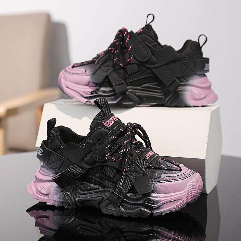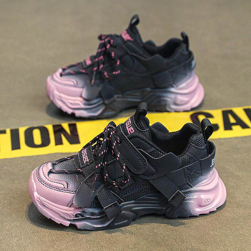 女童鞋春款2025新款儿童皮面防水运动鞋中大童品牌炸街女孩老爹鞋