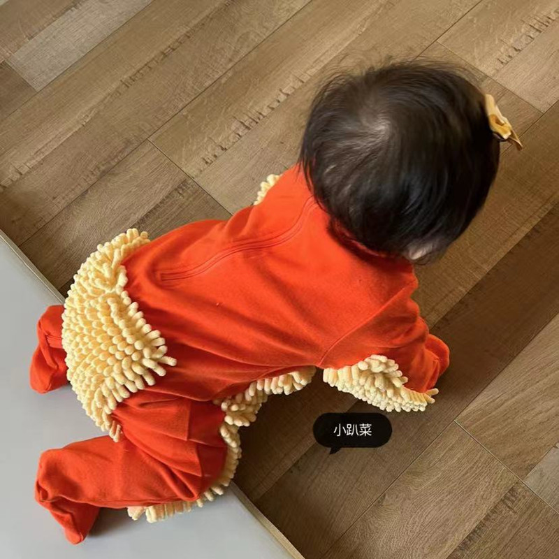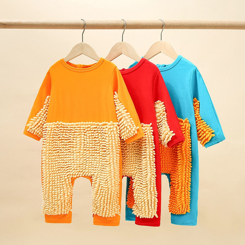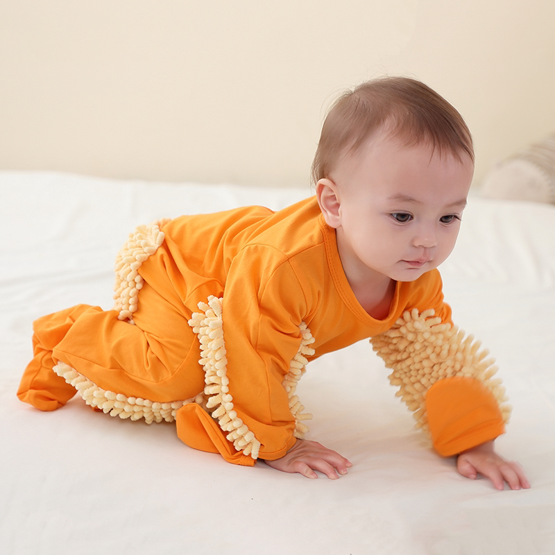 婴儿爬爬服护膝宝宝连体衣罩擦地板爬行服耐脏秋冬款搞怪拖把侠