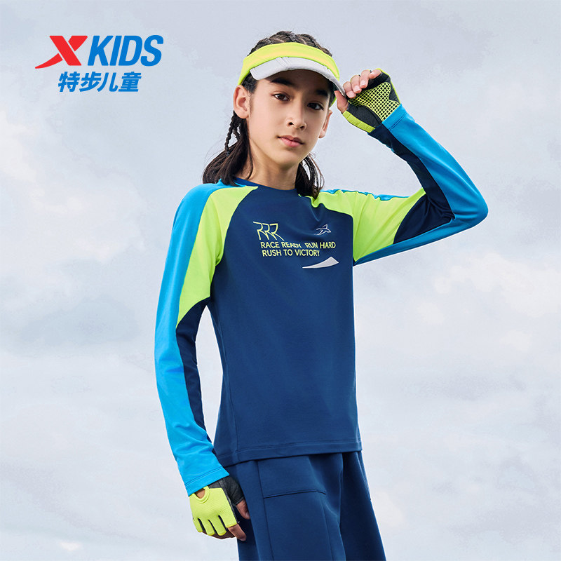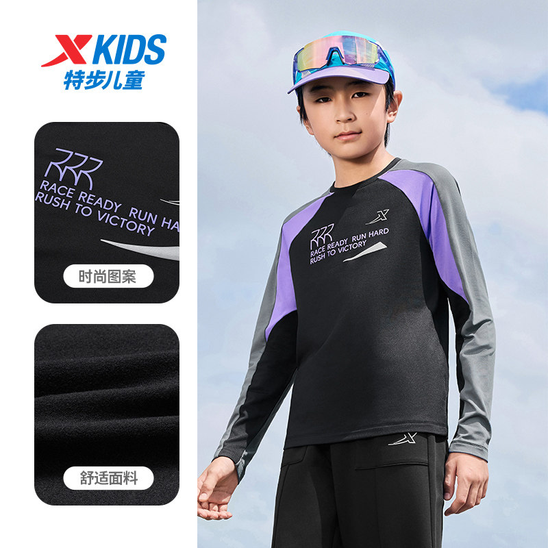 特步童装儿童运动针织衫男童秋冬季新款正品休闲轻便上衣女童长T
