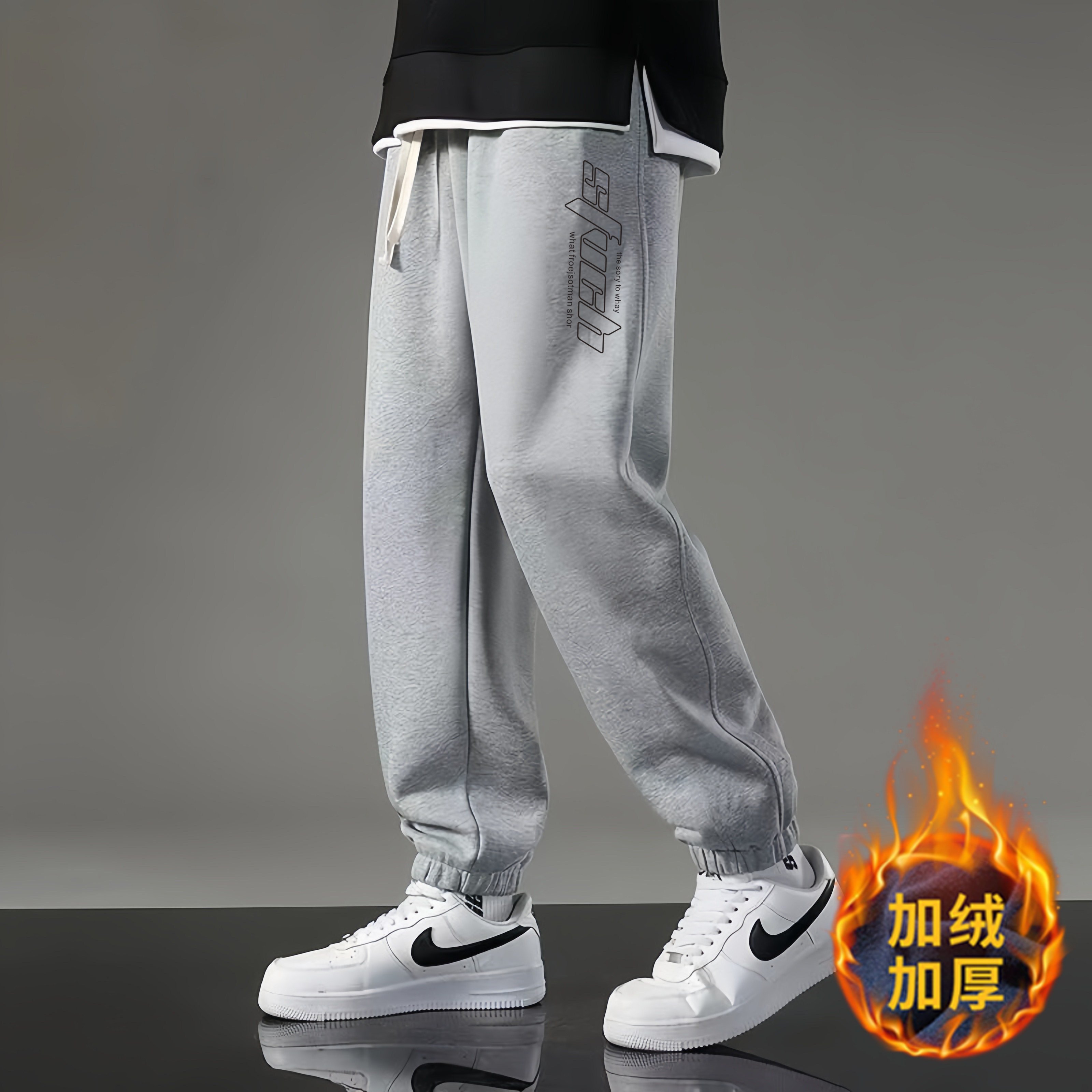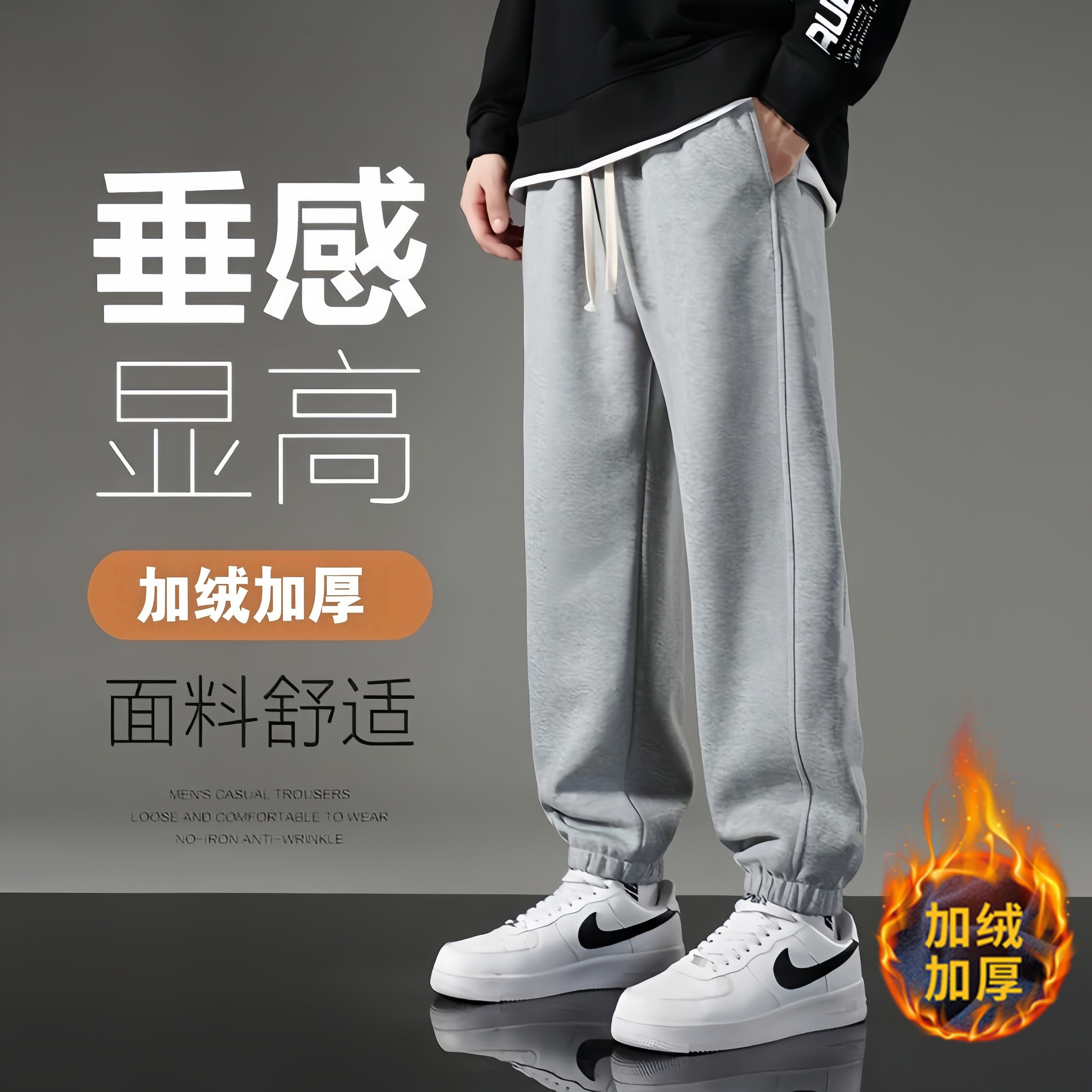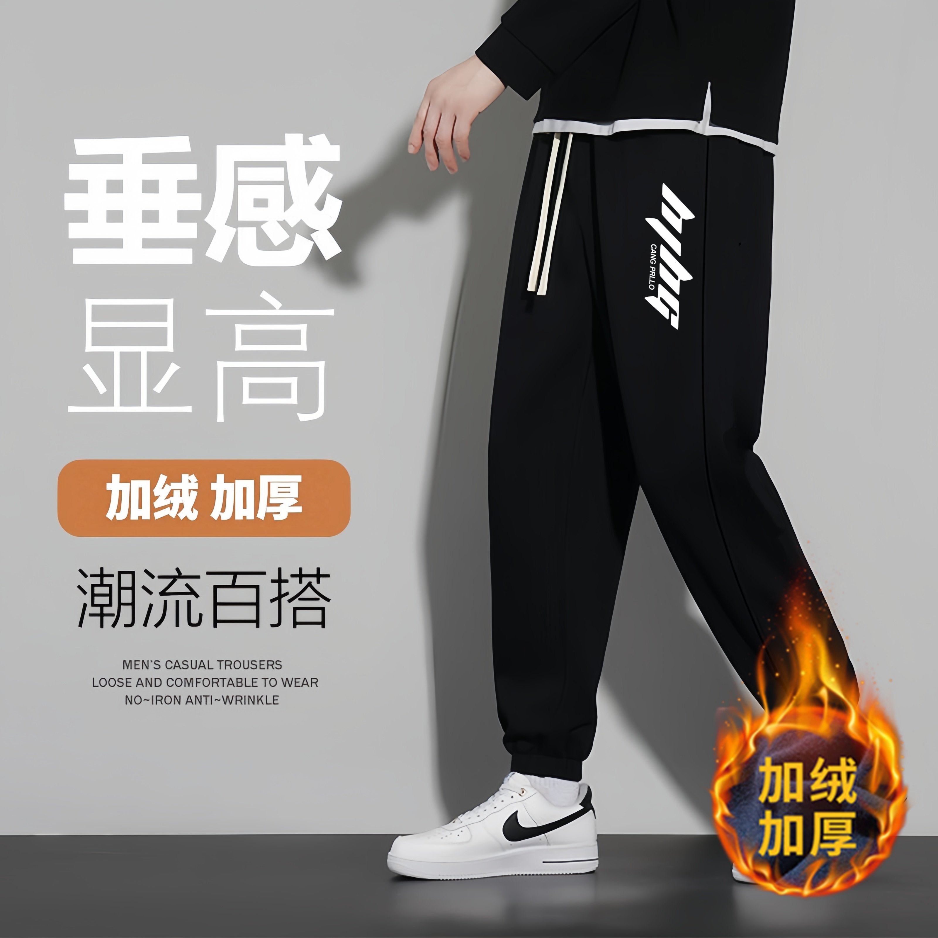 初中高中生秋冬季束脚裤子男加绒加厚宽松休闲青少年2025新款潮裤