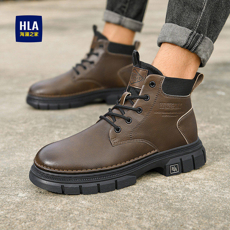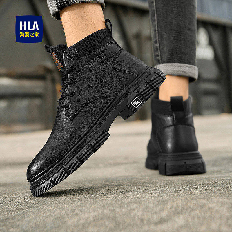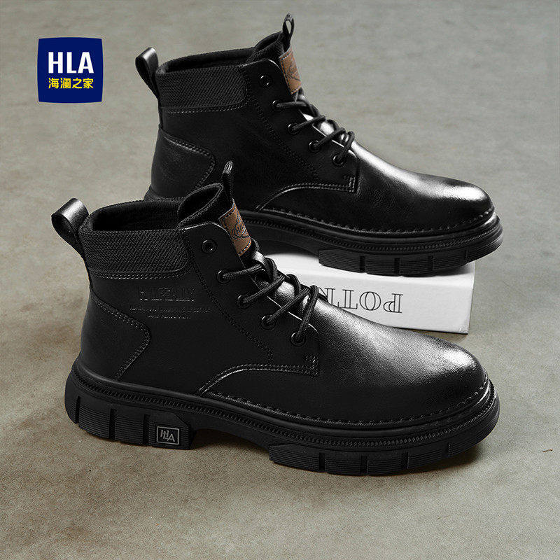海澜之家马丁靴男款冬季高帮英伦风黑色皮靴男士百搭机车工装战靴