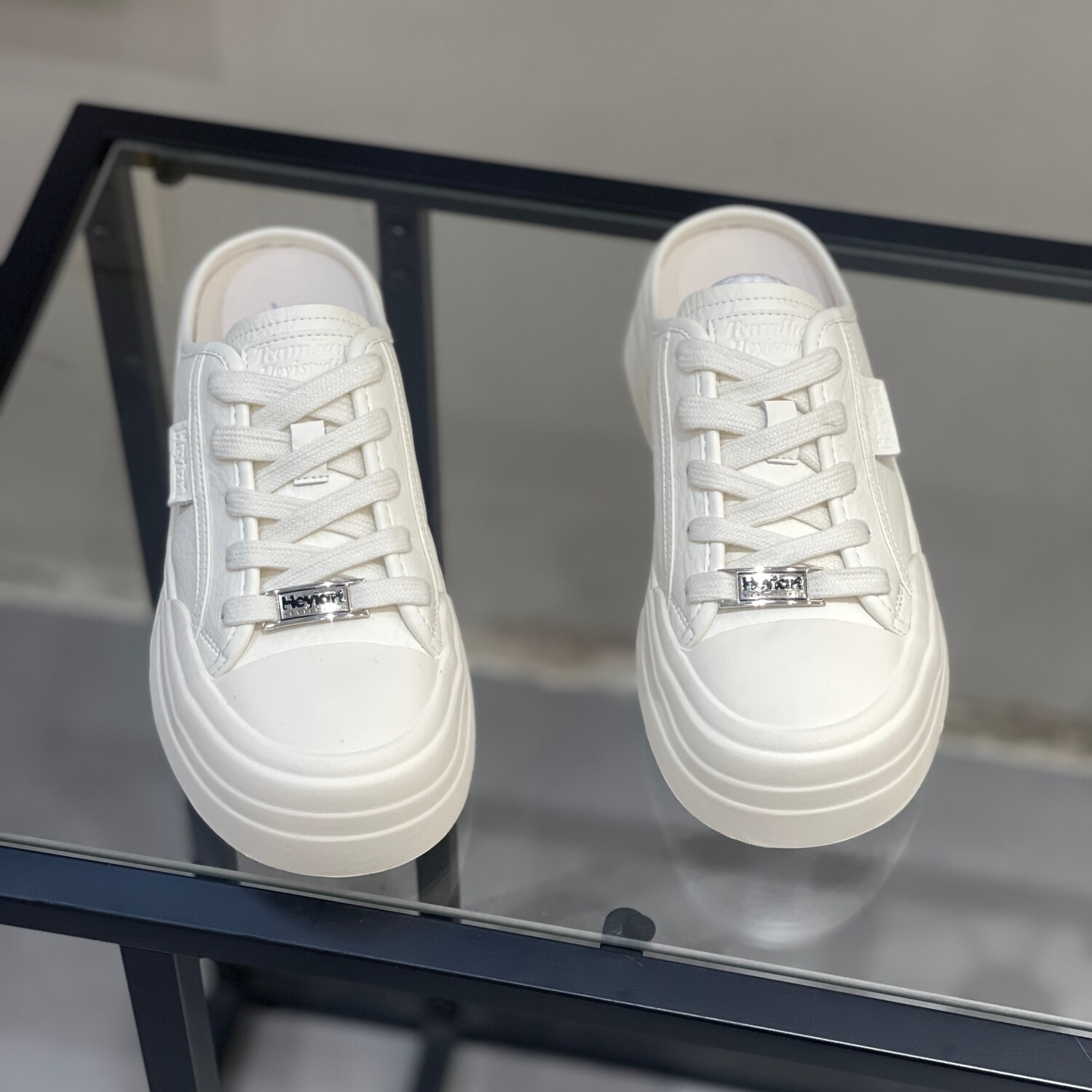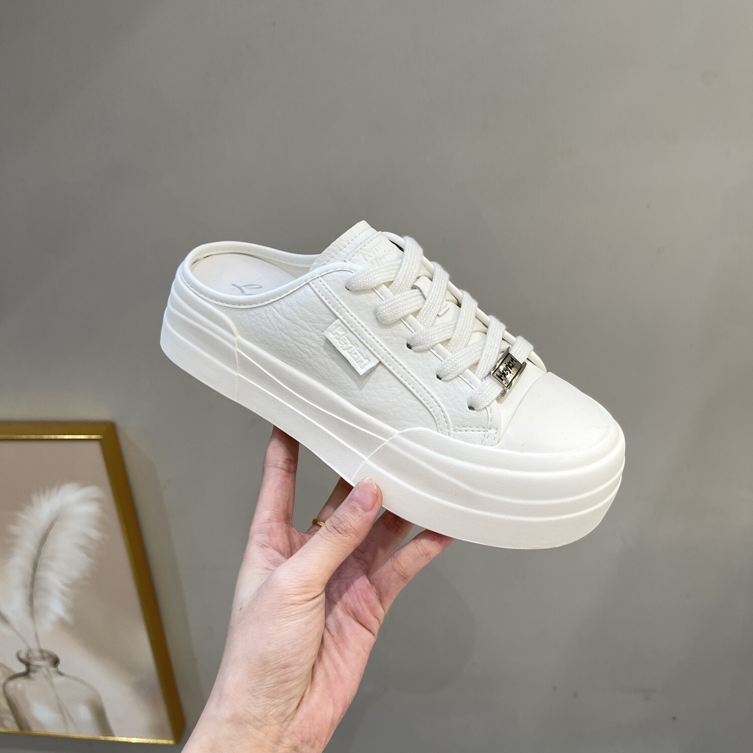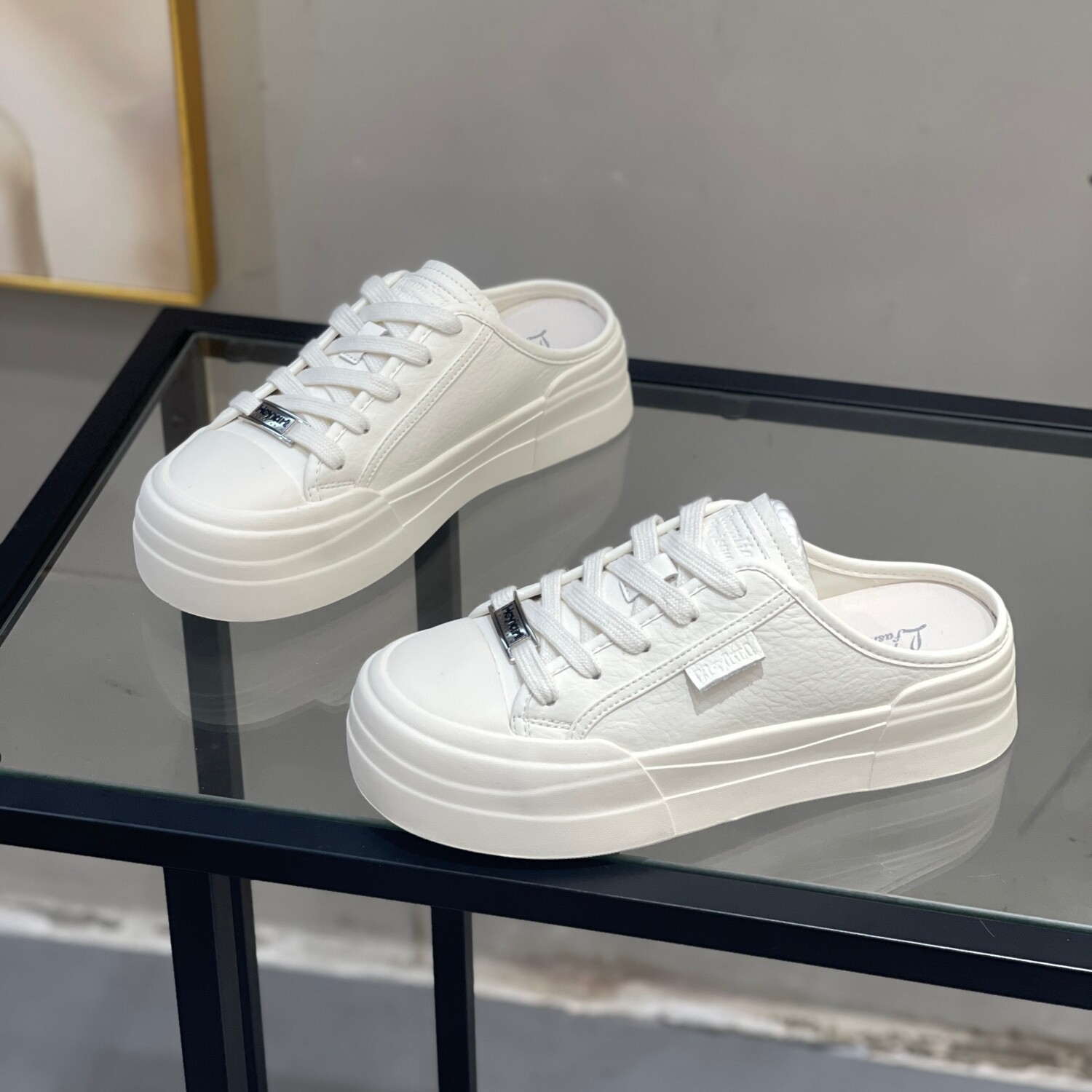 真皮小白鞋女无后跟懒人板鞋2026春夏新款超火厚底百搭包头半拖鞋