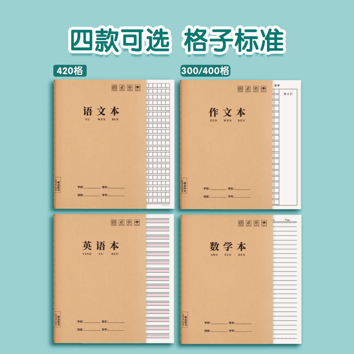 语文本16k三到六年级作业本小学生专用牛皮纸方格本练习簿四五年级统一作文数学英语本笔记初中生横格大本子