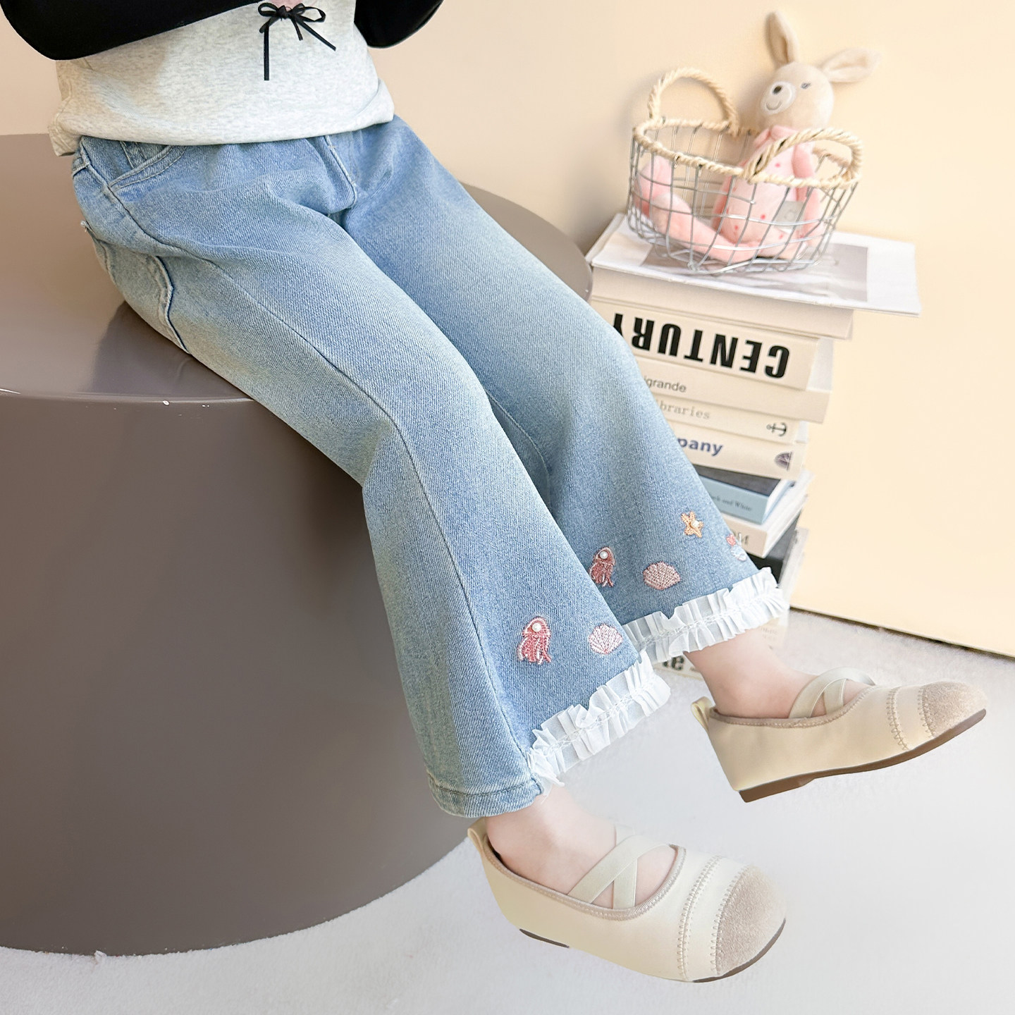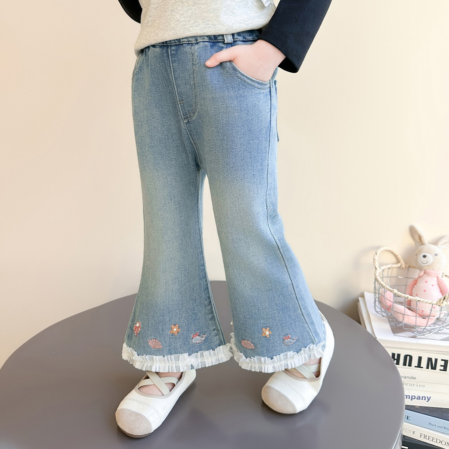 女童裤子春秋2026新款儿童洋气女孩宝宝春季牛仔裤春装洋气喇叭裤