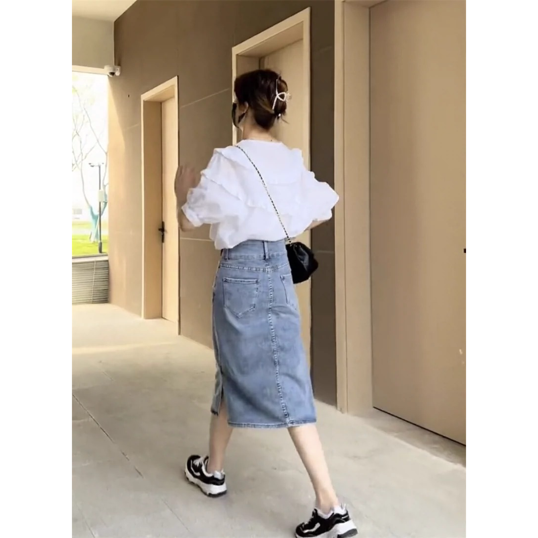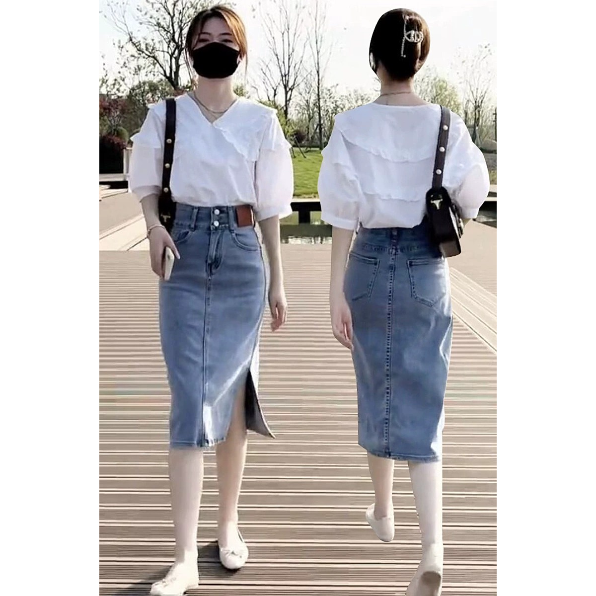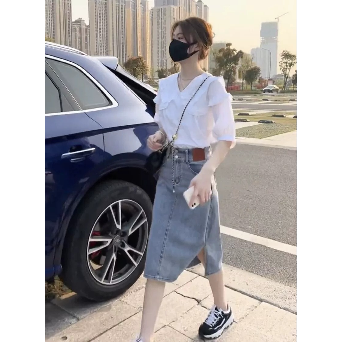 早春夏季女装2026新款微胖显瘦高级感炸街上衣牛仔半身裙两件套装