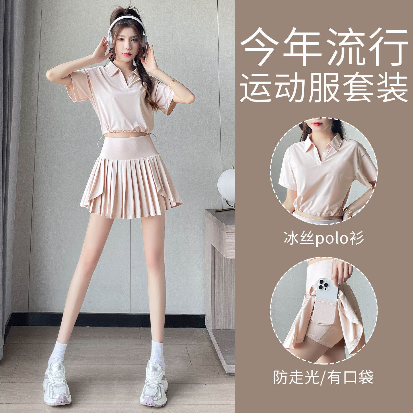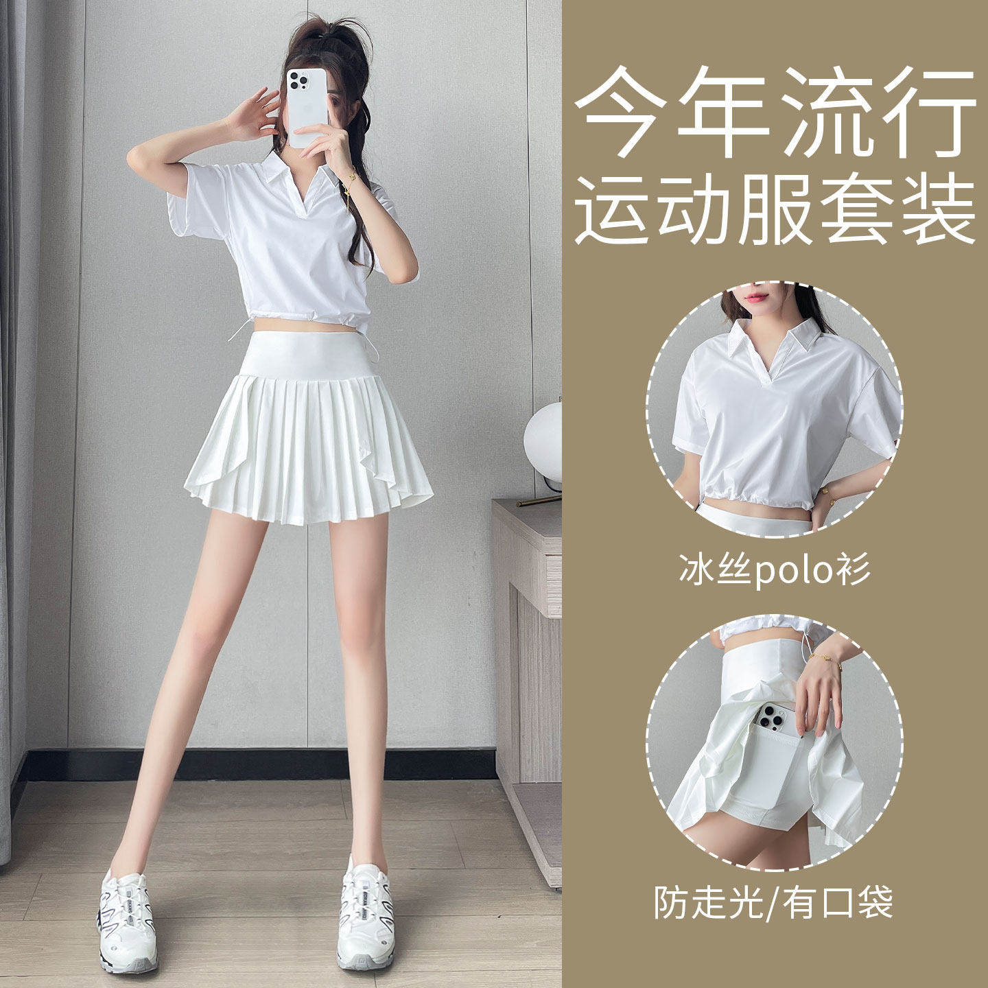 绝美羽毛球服女夏2026新款网球运动套装宽松速干polo上衣健身短裙