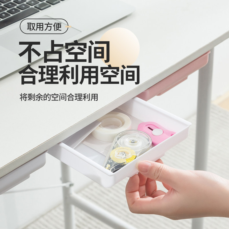 桌下隐形抽屉式收纳盒桌面宿舍书桌底文具整理盒免打孔隐藏神器