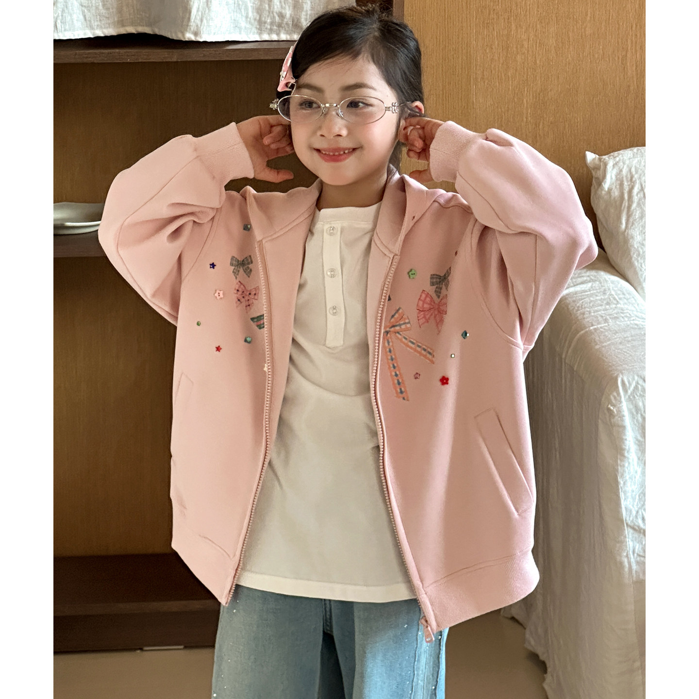 女童春装外套春秋款2026新款女大童装春装连帽卫衣青少年粉色上衣