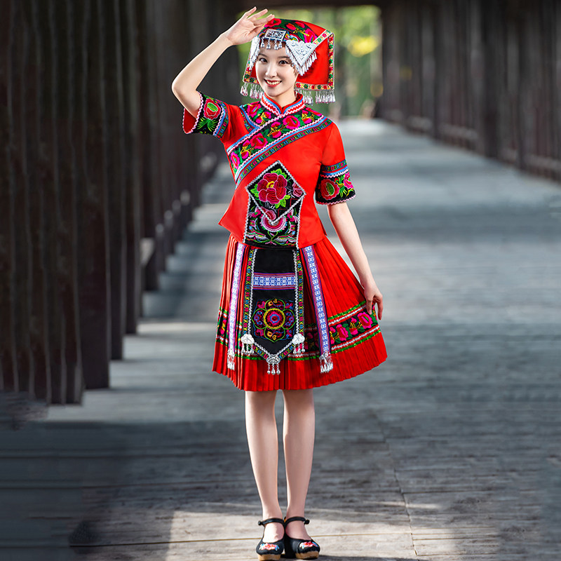 苗族少数民族服装女成人彝瑶族云南贵州苗寨服饰舞蹈服演出衣服