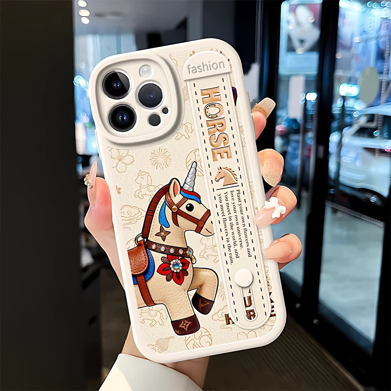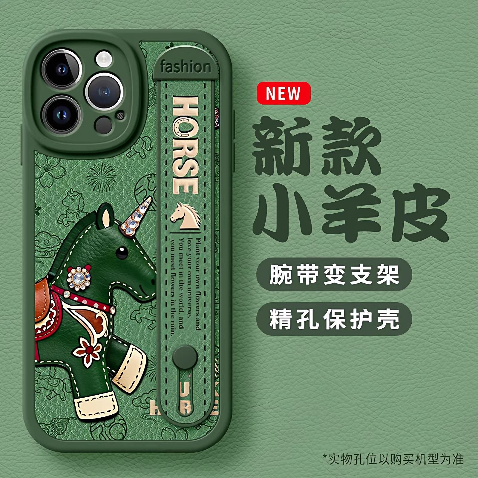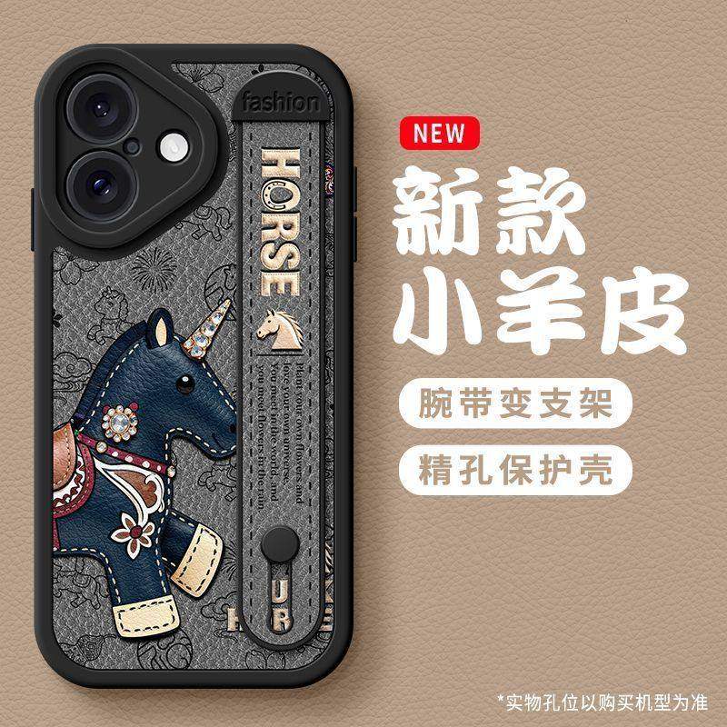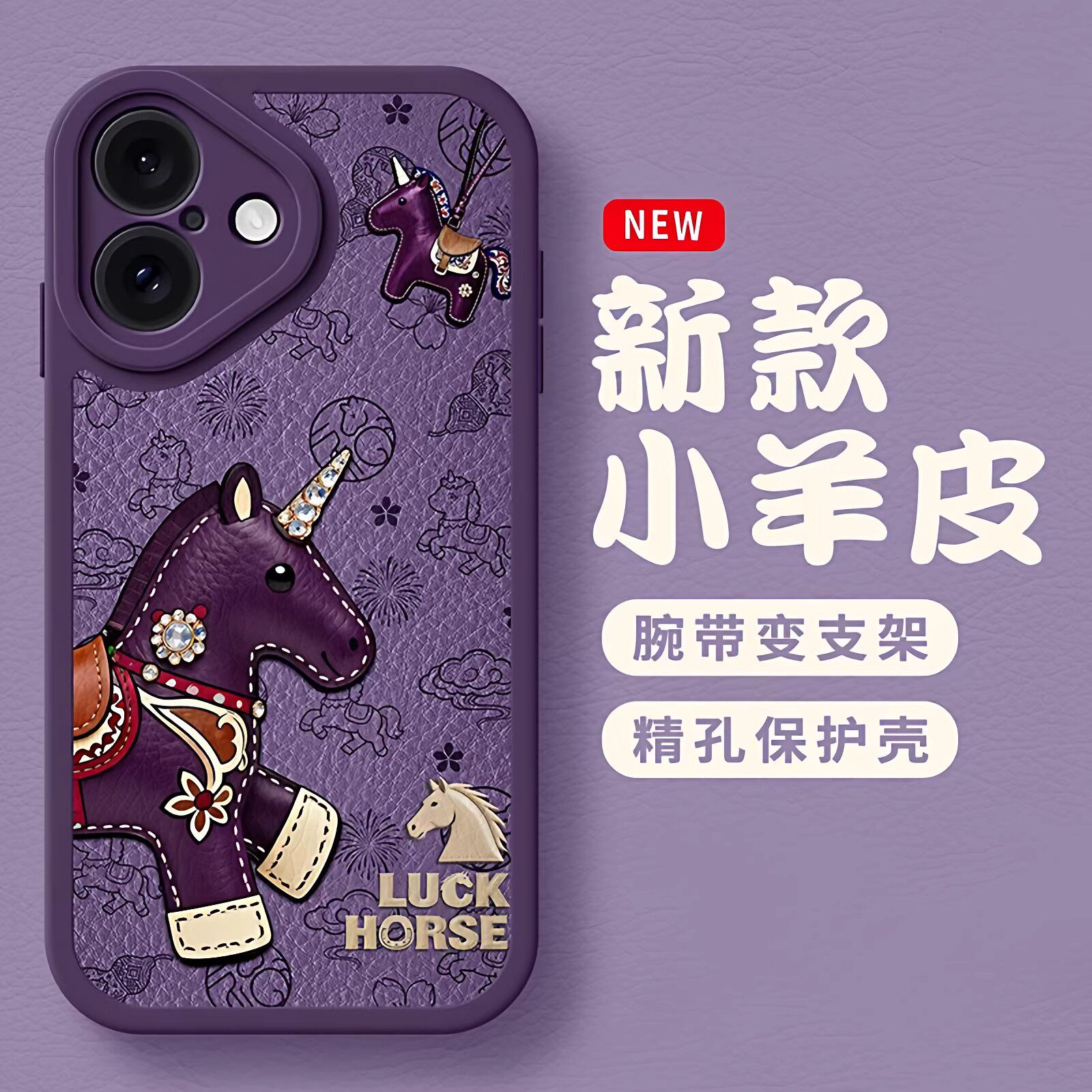 轻奢小马适用苹果17/16Pro/15promax手机壳iPhone14Pro女2026新款13腕带支架12硅胶全包11Pro防摔xsmax保护套