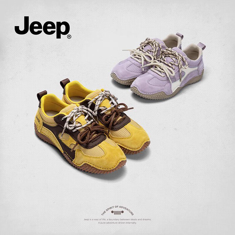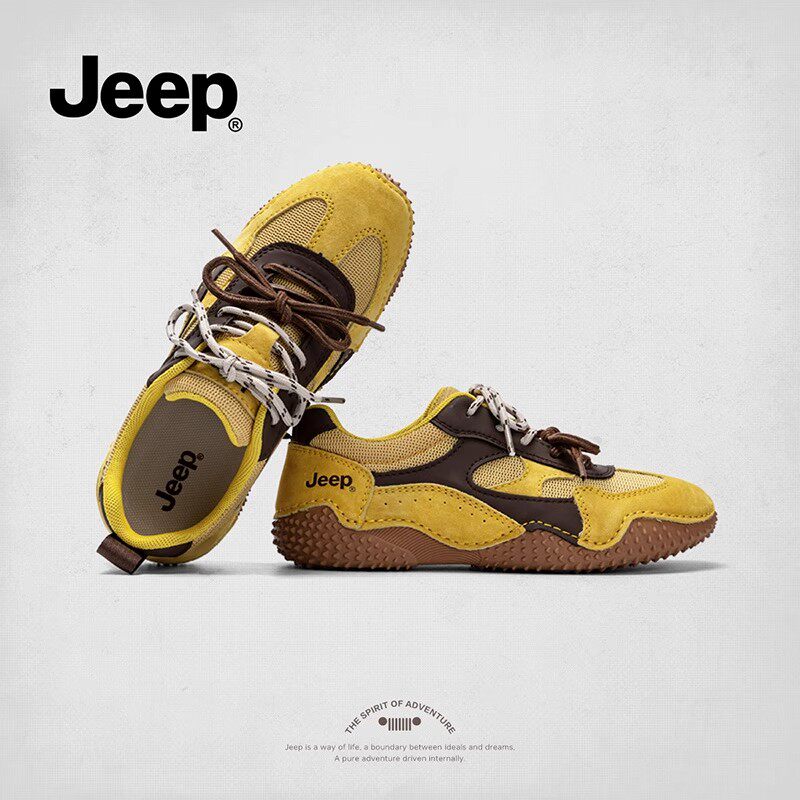 jeep黄色德训鞋2025新款夏季透气跑步鞋轻便软底通勤百搭休闲女鞋
