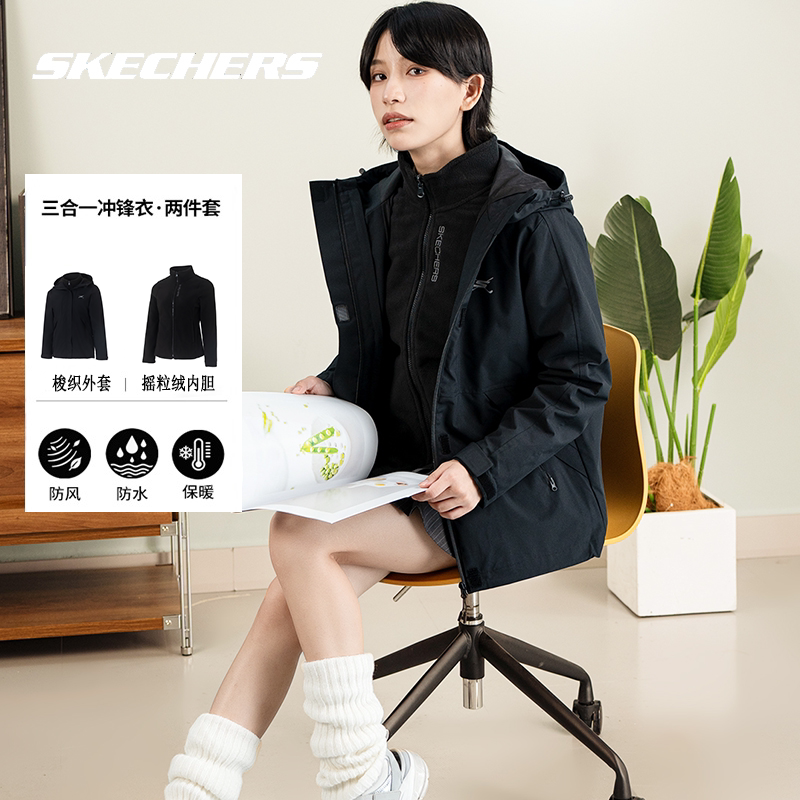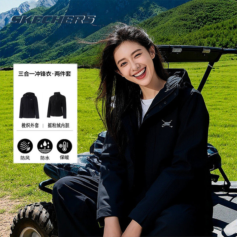 斯凯奇外套女款春季2026新款黑色三合一冲锋式上衣运动夹克登山服