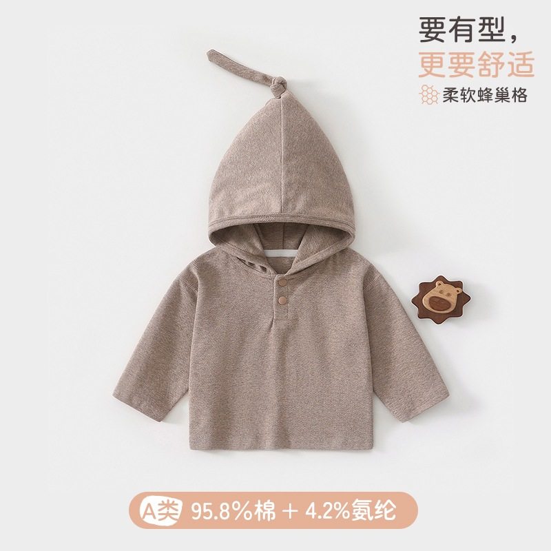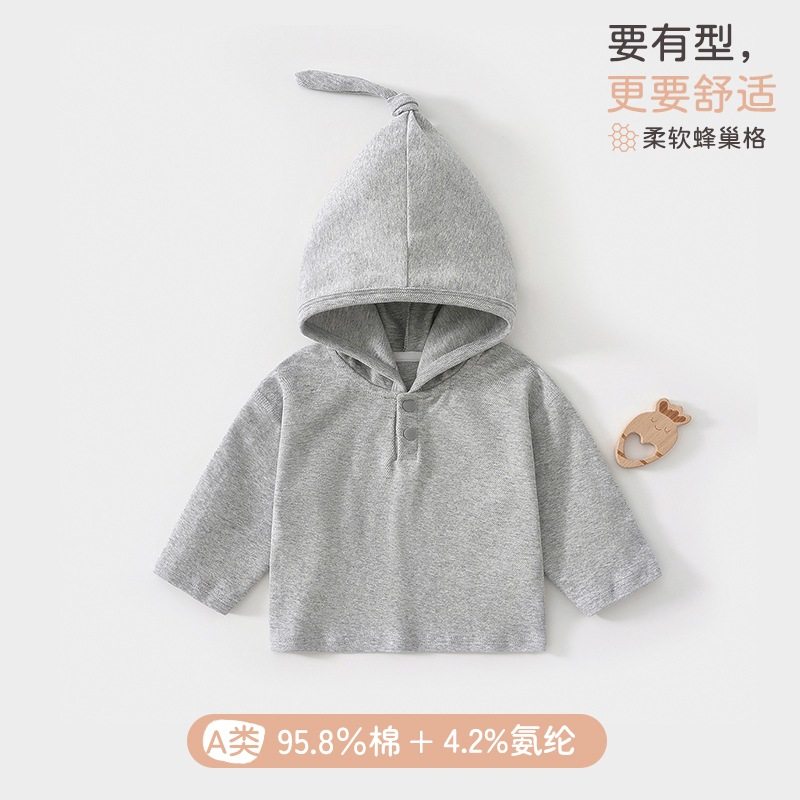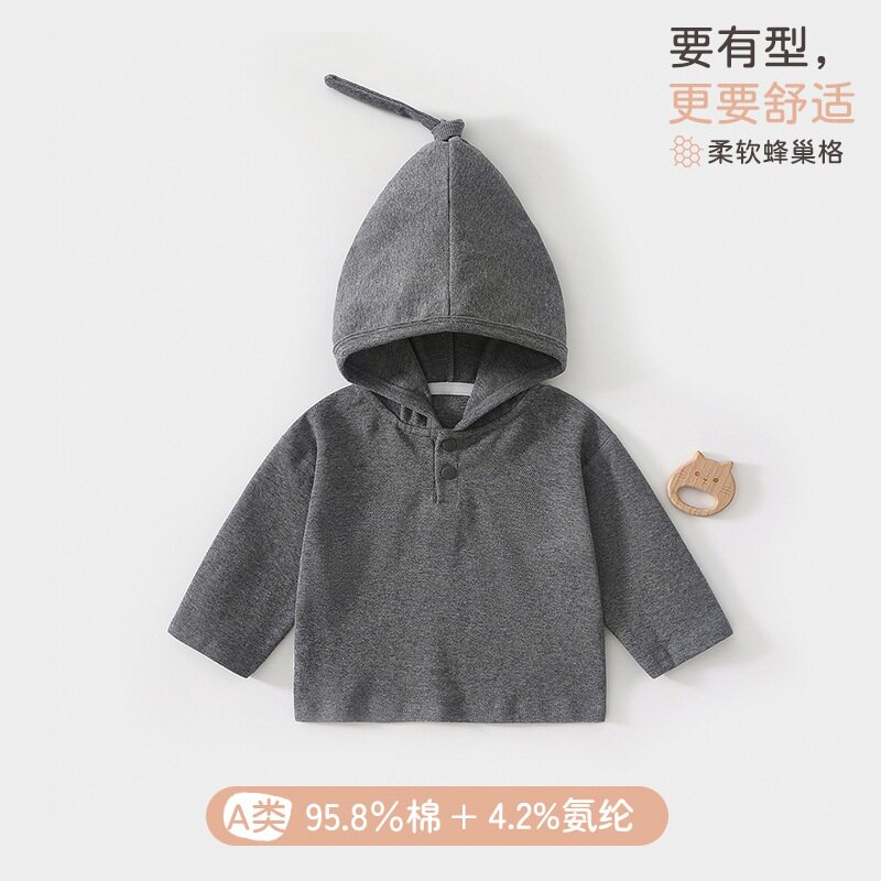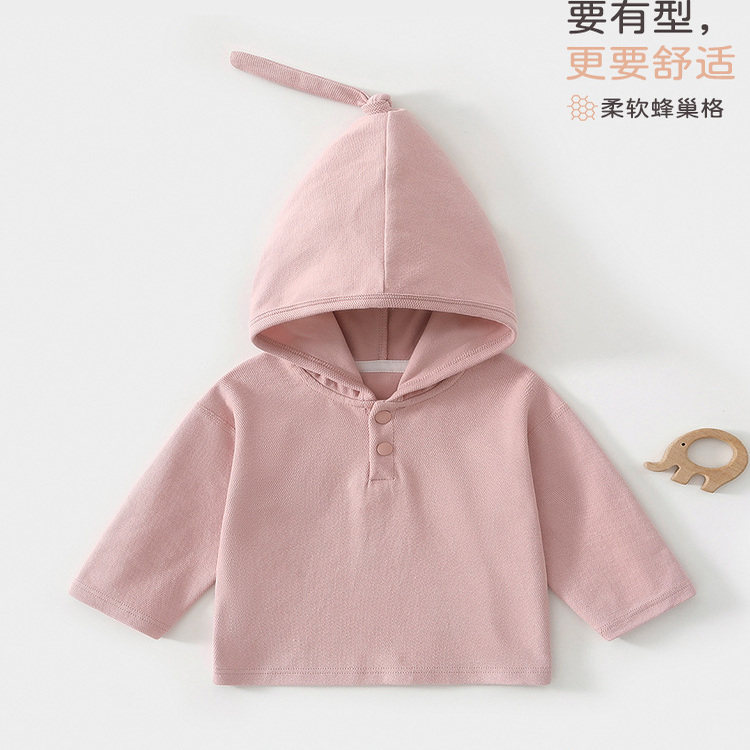 宝宝春秋季纯棉连帽卫衣男女童a类巫师帽打底卫衣婴儿打底衫纯色