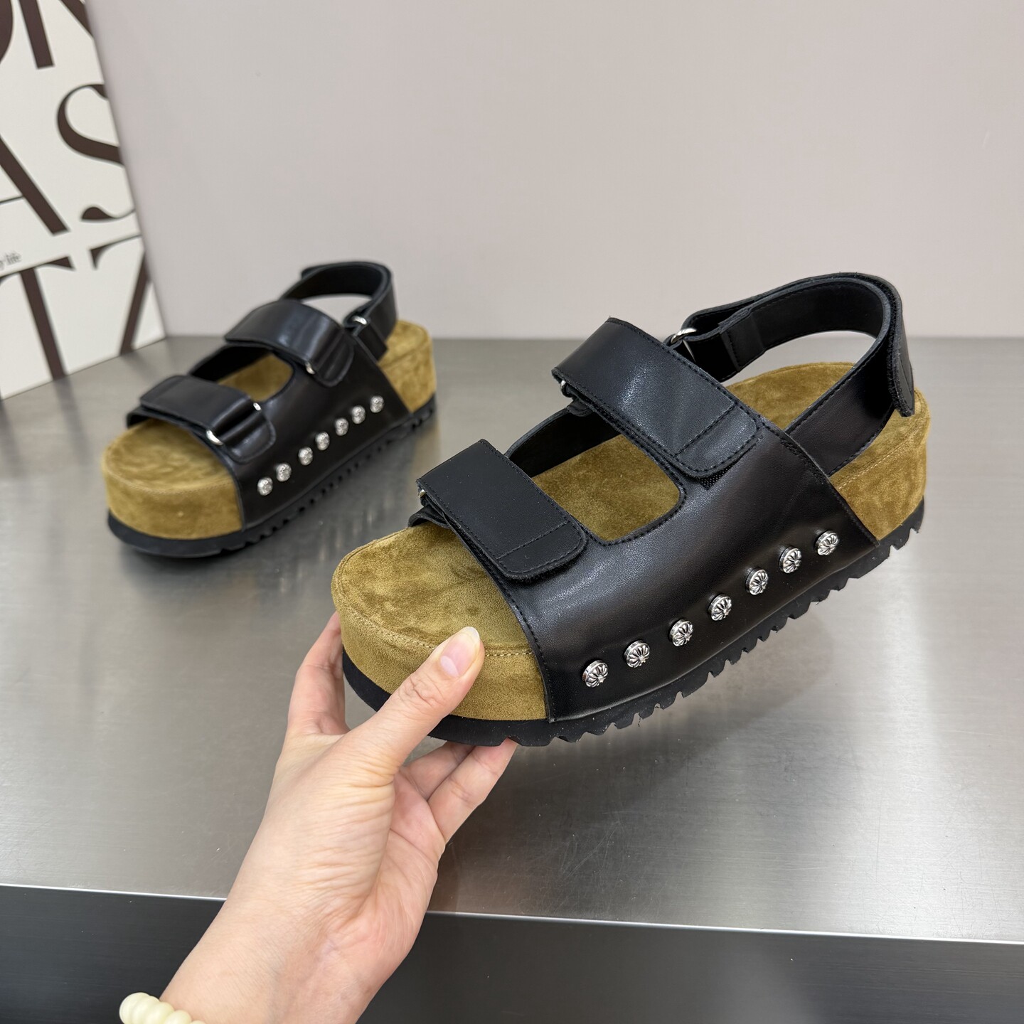 2026夏季新款真皮厚底增高勃肯凉鞋女外穿高级感网红双带罗马凉鞋
