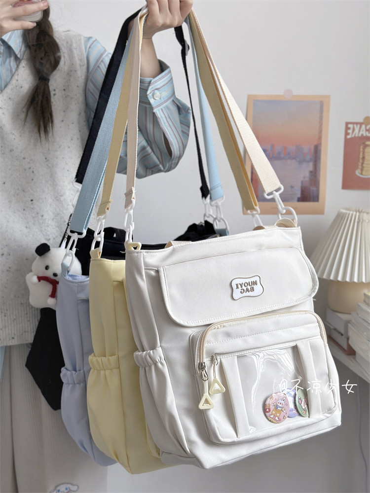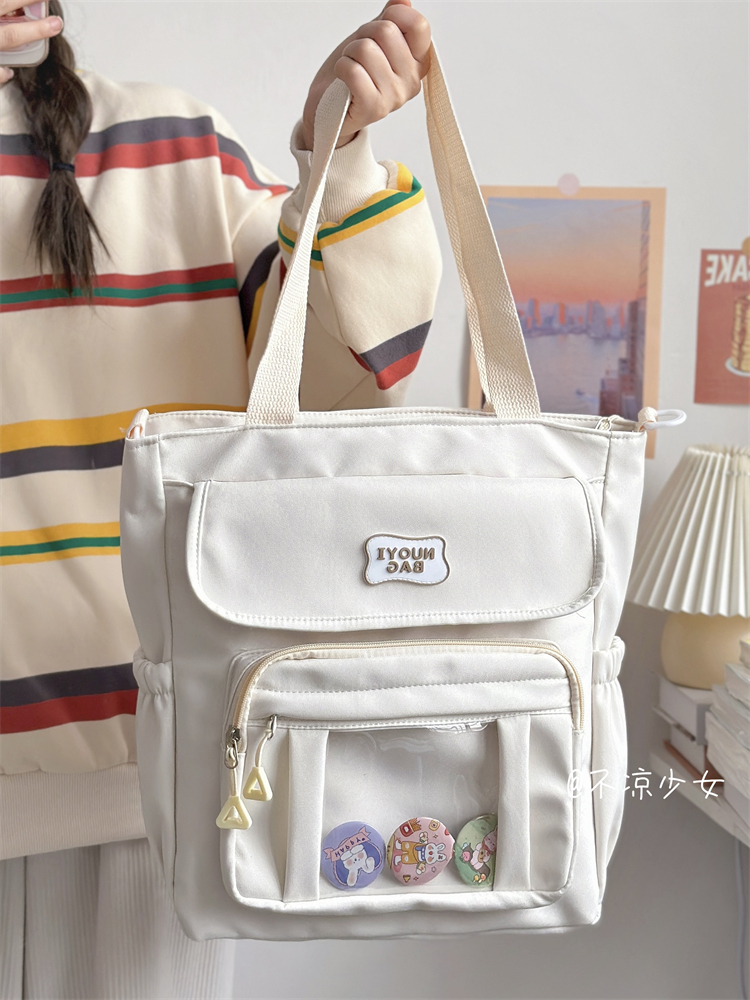 大容量通勤托特包日系ins学生上课帆布包学院少女清新小众斜挎包