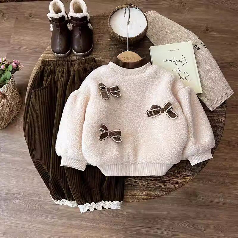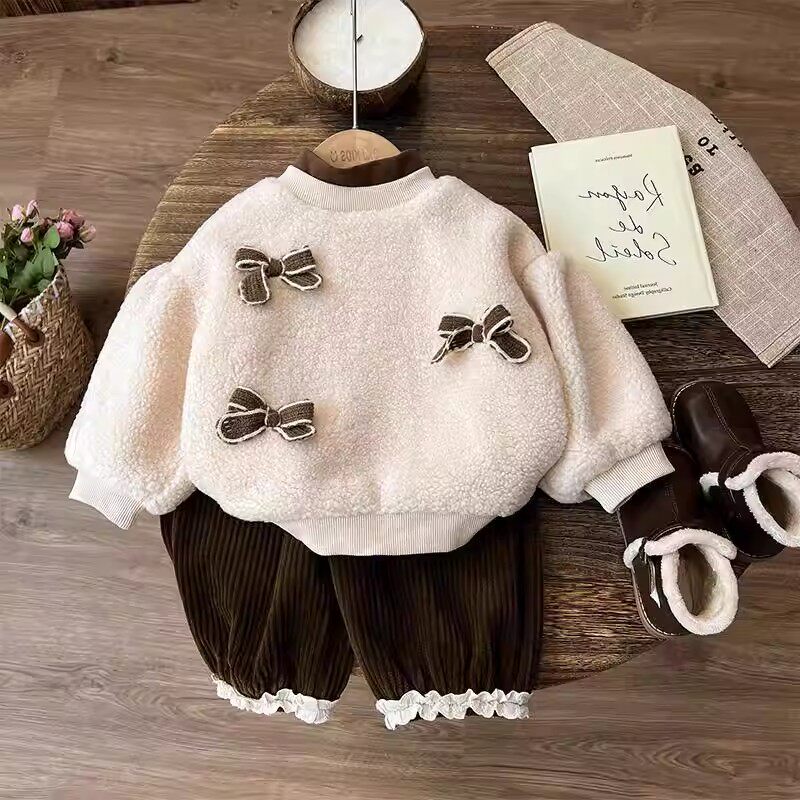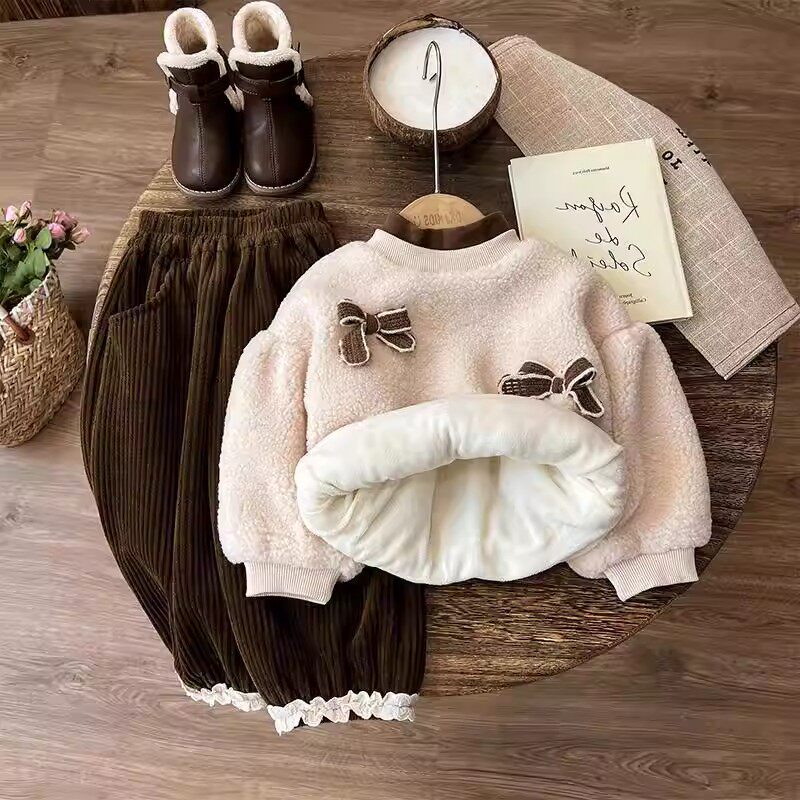 法国秋冬季女童加绒加厚冬装儿童宝宝高领卫衣小香风洋气两件套装