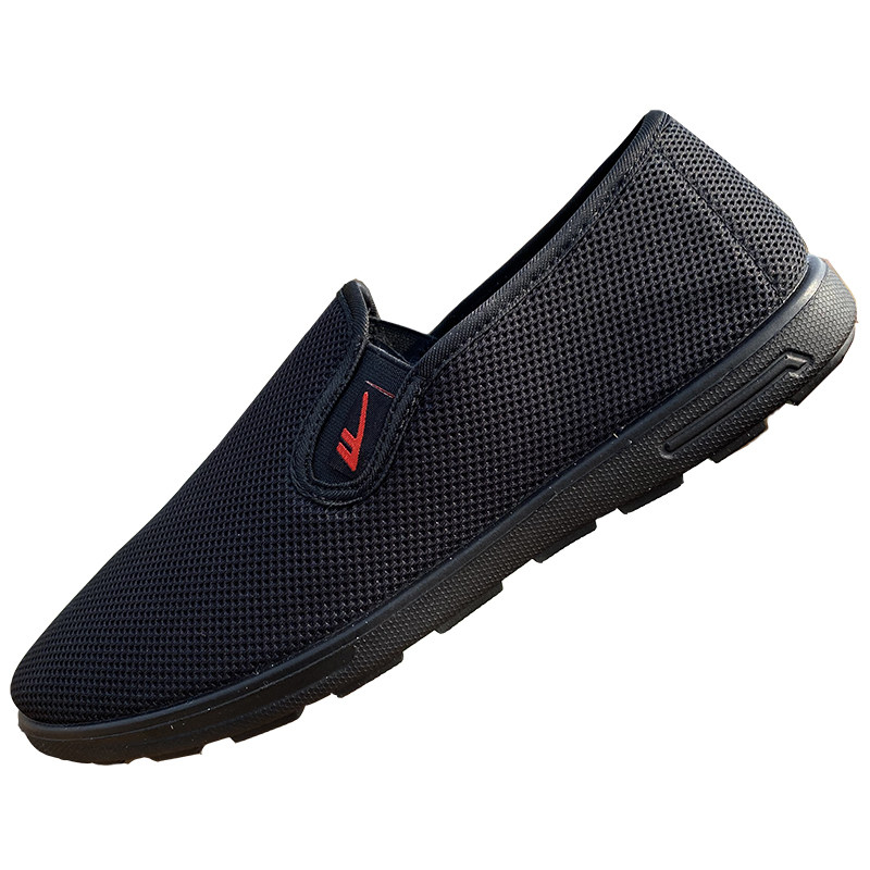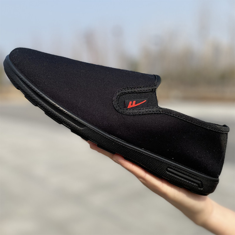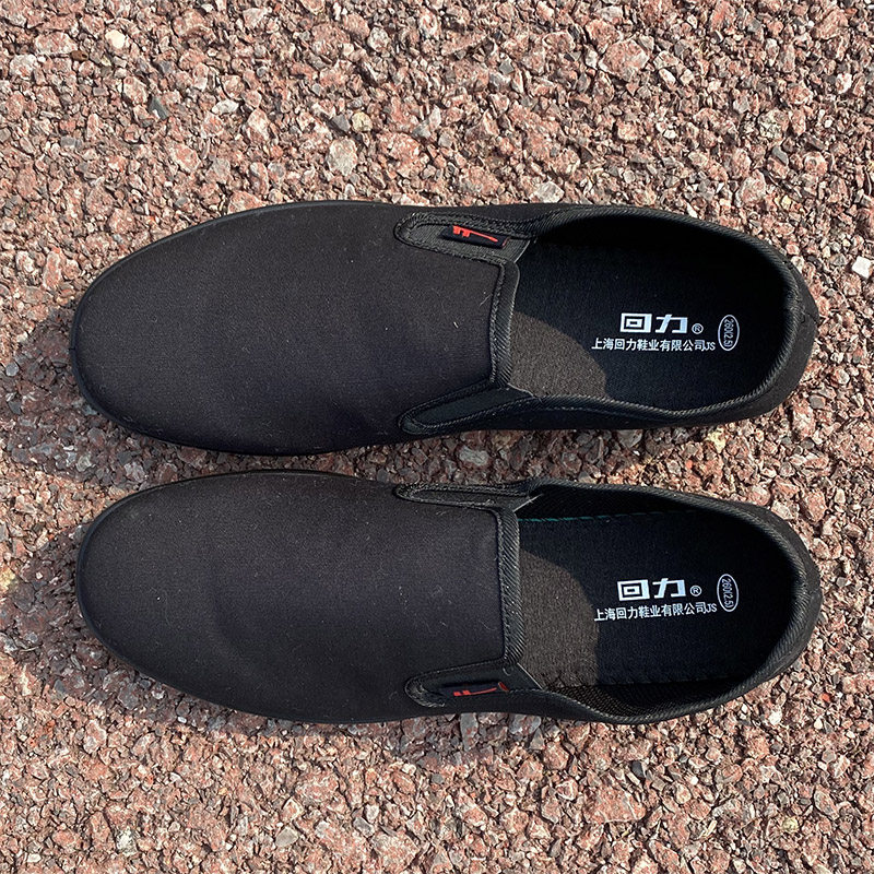 春夏季上海回力老人鞋男休闲超轻便防滑一脚蹬透气全黑老北京布鞋