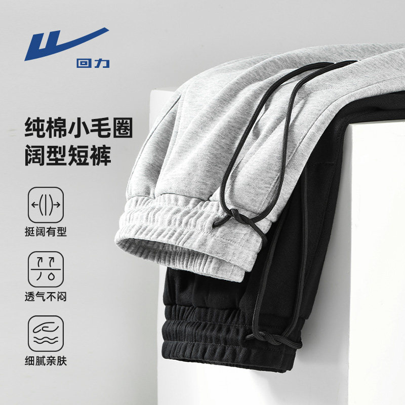 回力复古咖色纯棉短裤男生夏季薄款宽松运动五分裤男款百搭中裤男