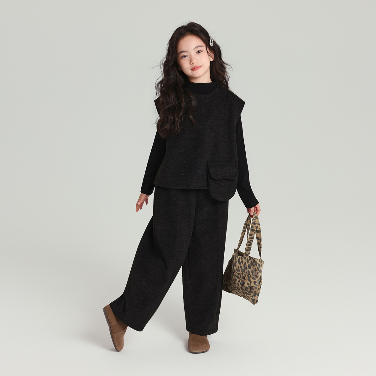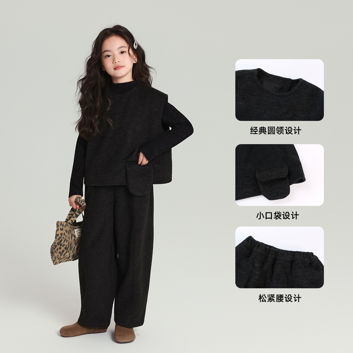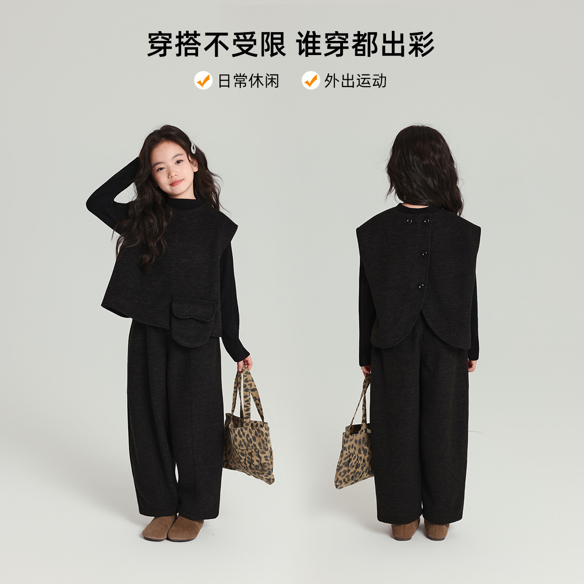 布丁哈鲁童装冬装女童洋气上衣2026秋冬新款儿童甜美休闲套装
