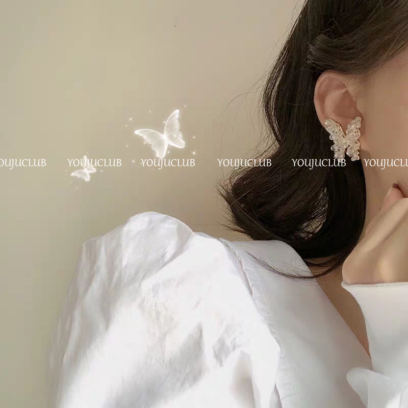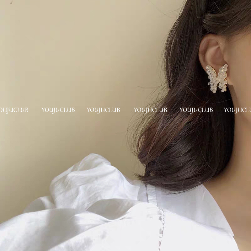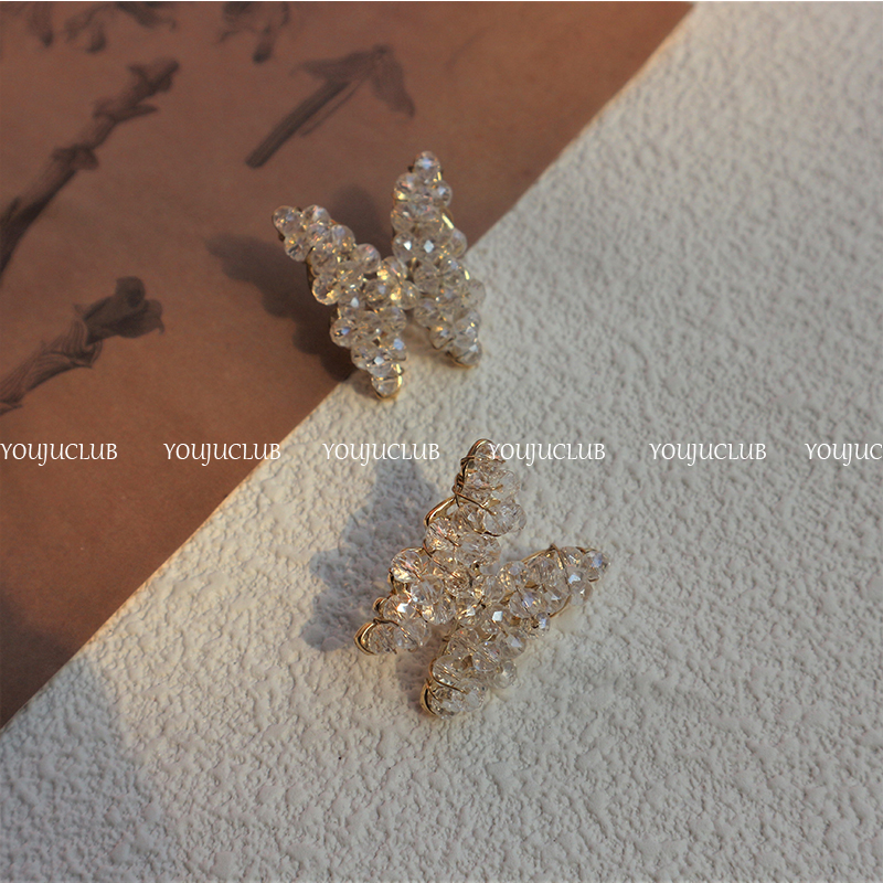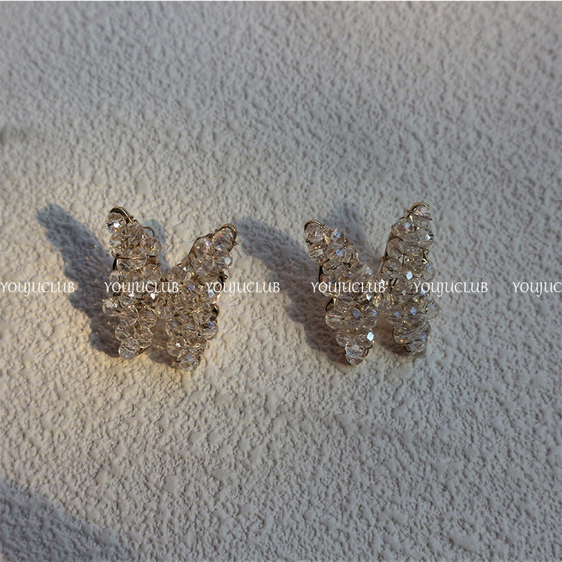 YOUJUclub-纯手工 美到犯规的耳环水晶串珠蝴蝶耳饰超仙耳钉耳夹