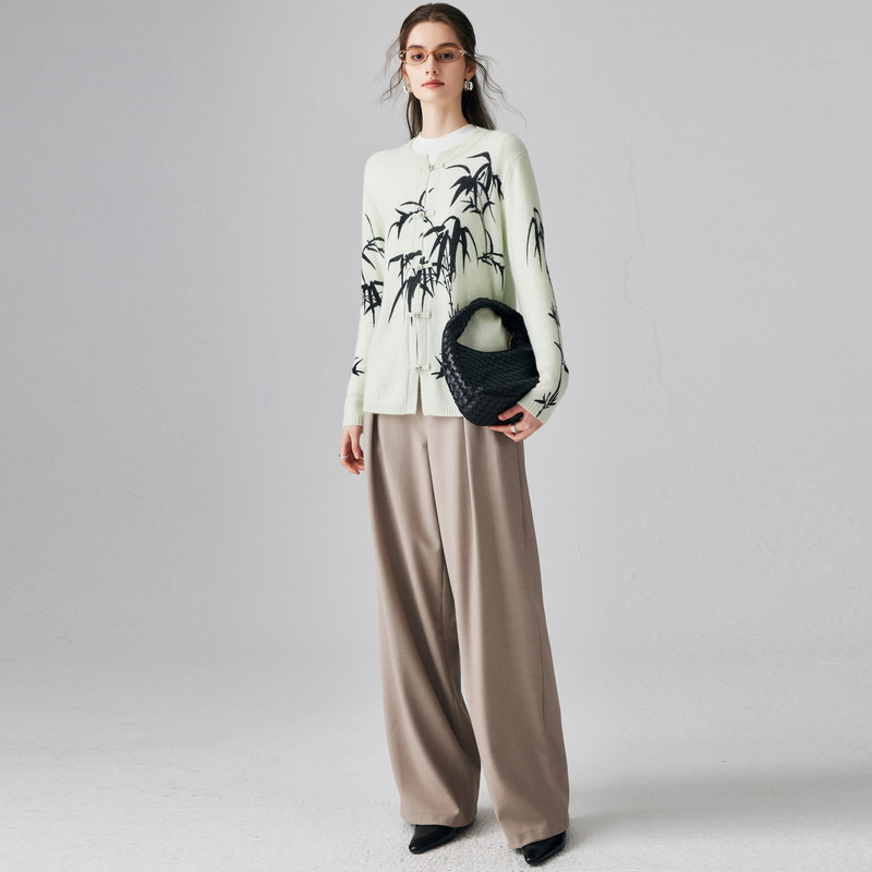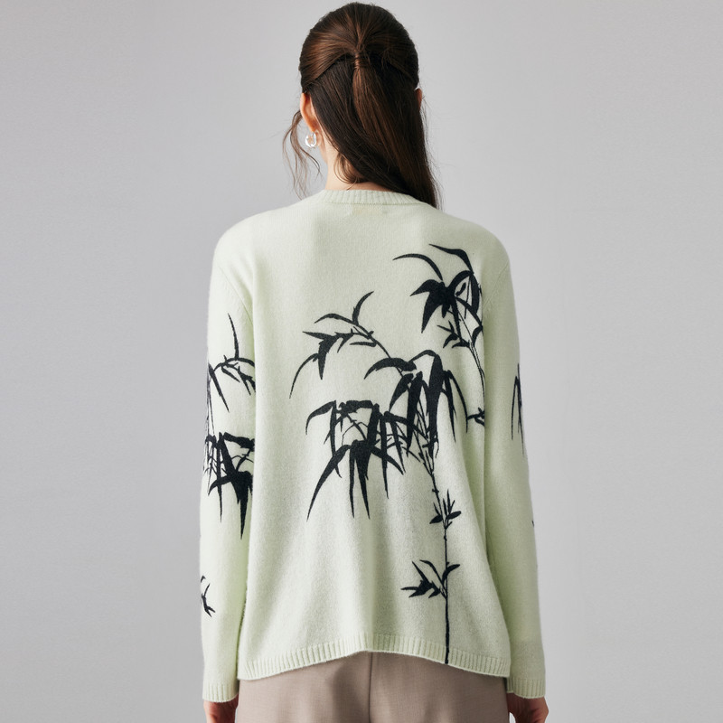 311线报网描述:26支双股纱,100%山羊绒,水墨竹提花