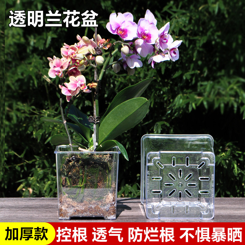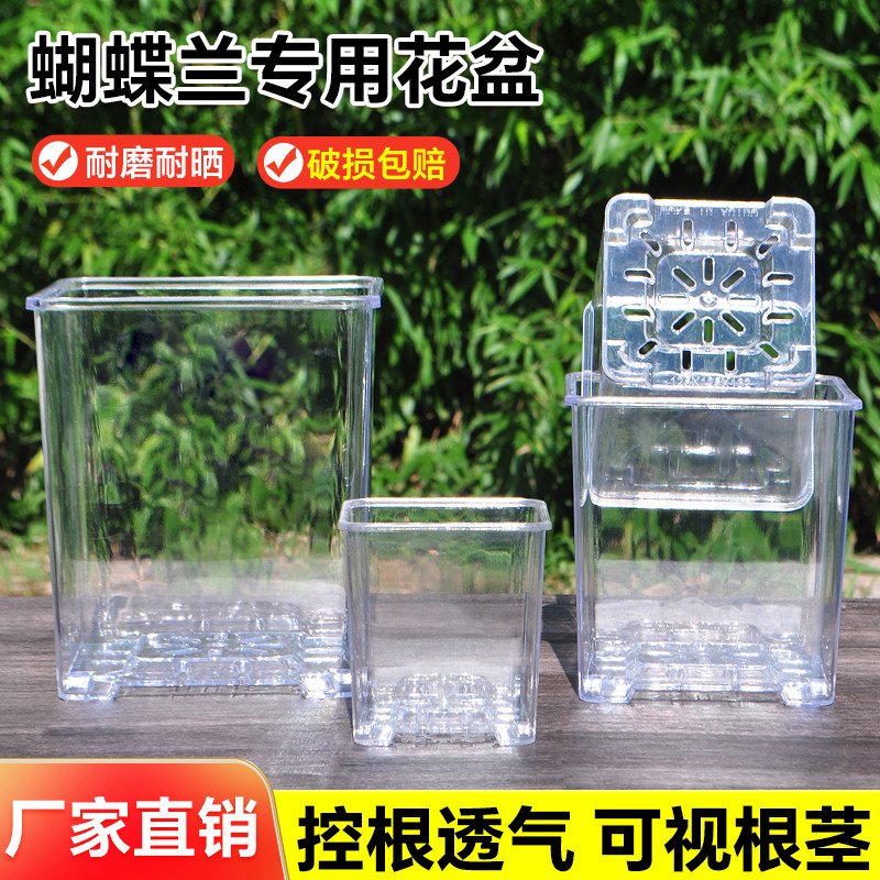 加高透明树脂塑料正方形花盆透气控根蝴蝶兰洋可视观察植物根系