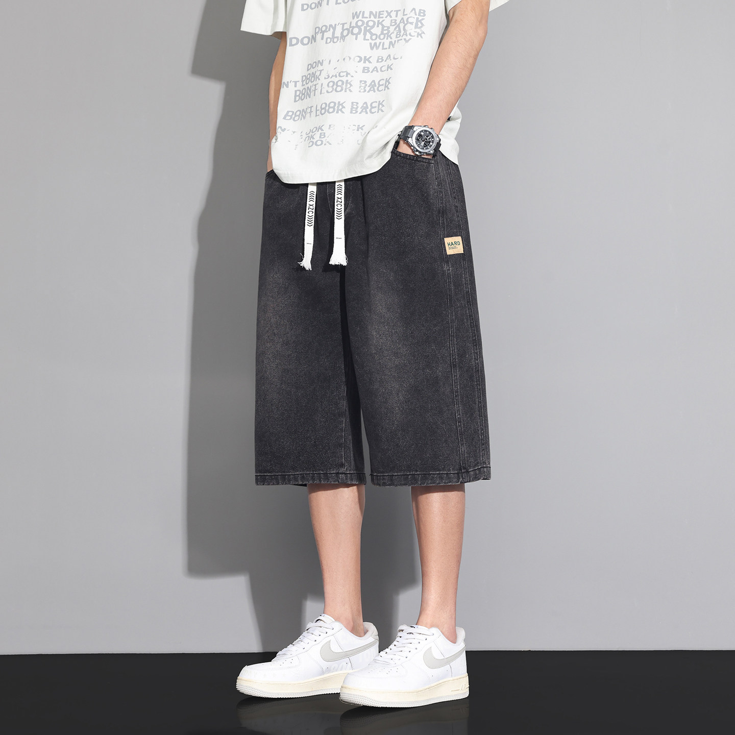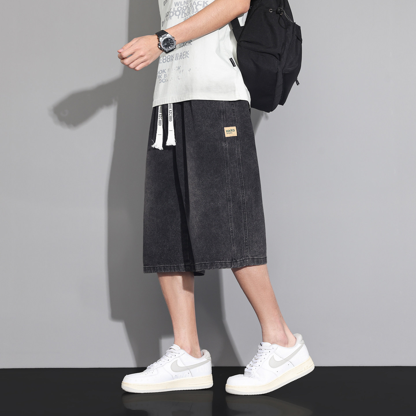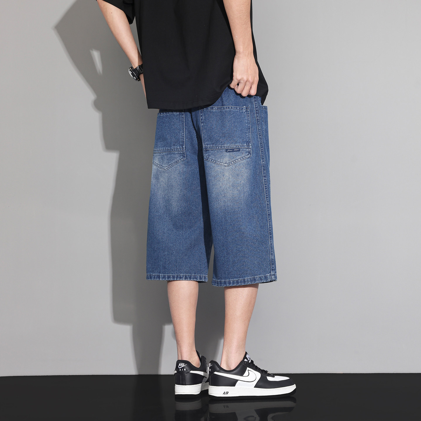 七分裤男款夏季薄款潮流男生复古牛仔短裤新款宽松百搭休闲中裤子