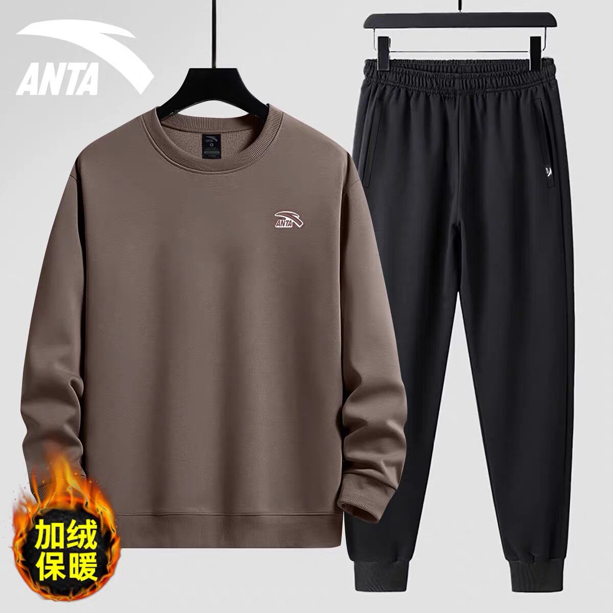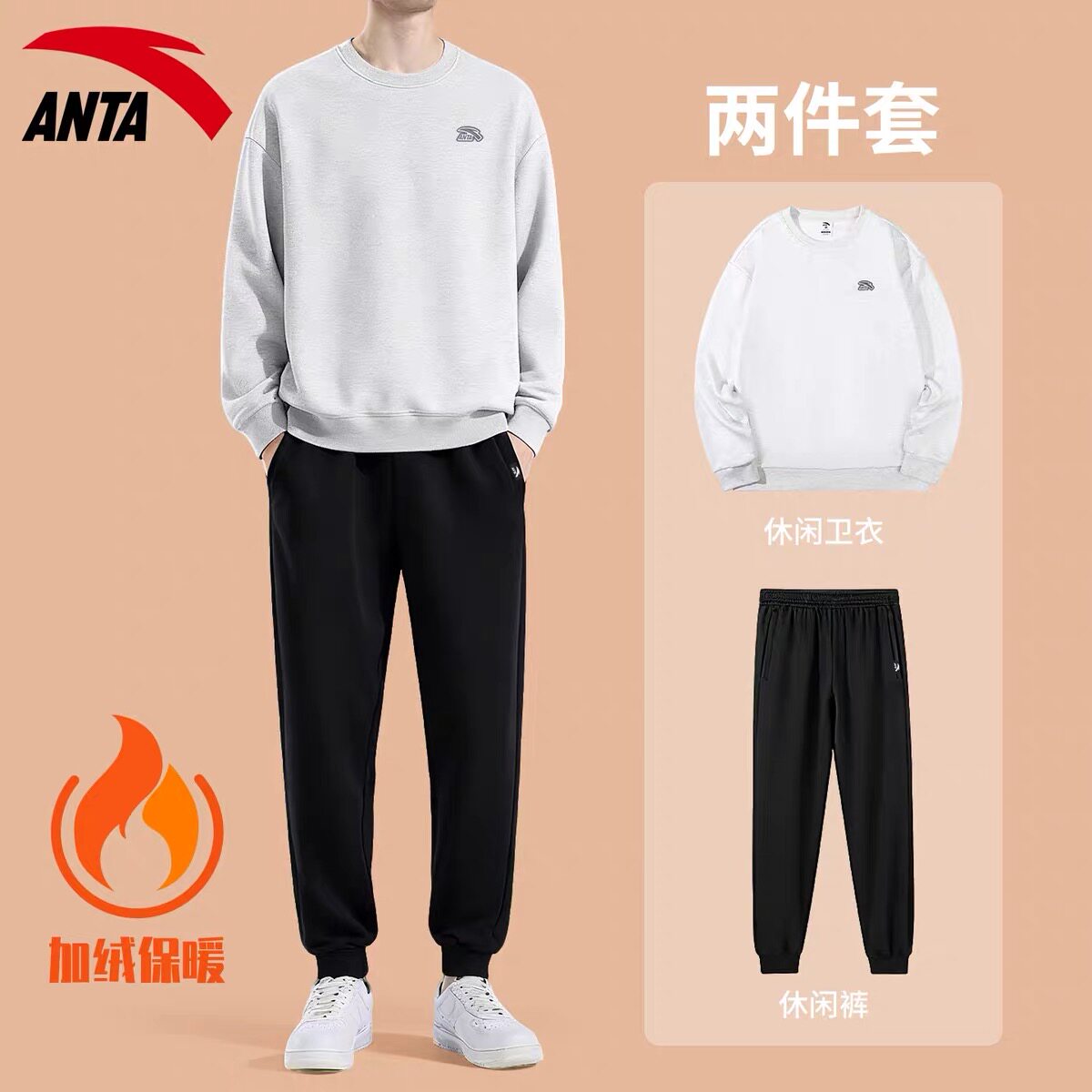 安踏运动套装男装加绒青少年秋冬季2026新款男款宽松圆领卫衣长裤