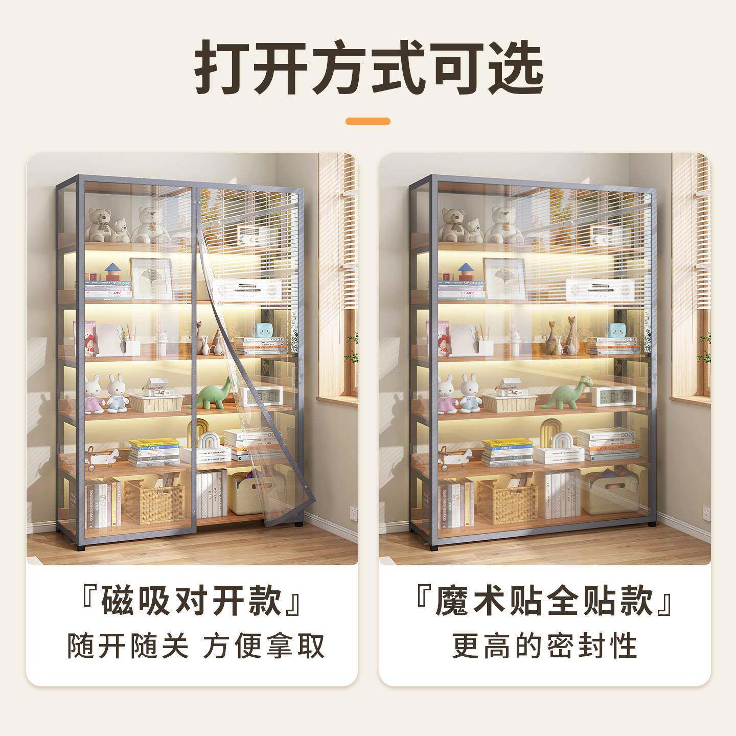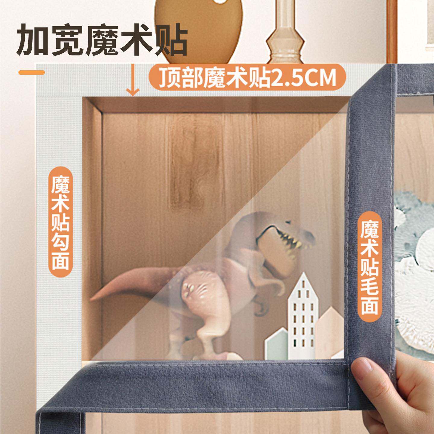 透明柜子遮挡帘魔术贴书架书柜防尘帘橱柜防水杂物柜开放式柜门帘