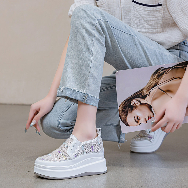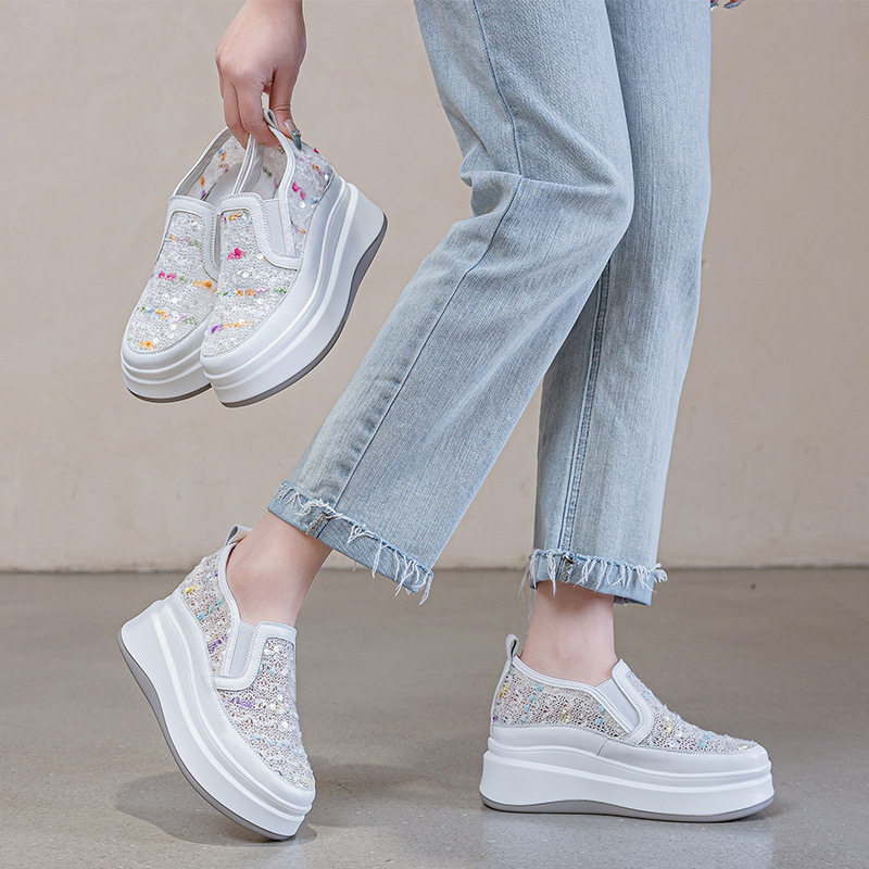 内增高女鞋网面透气松糕厚底百搭透气小白鞋夏天搭配裙子的鞋子潮